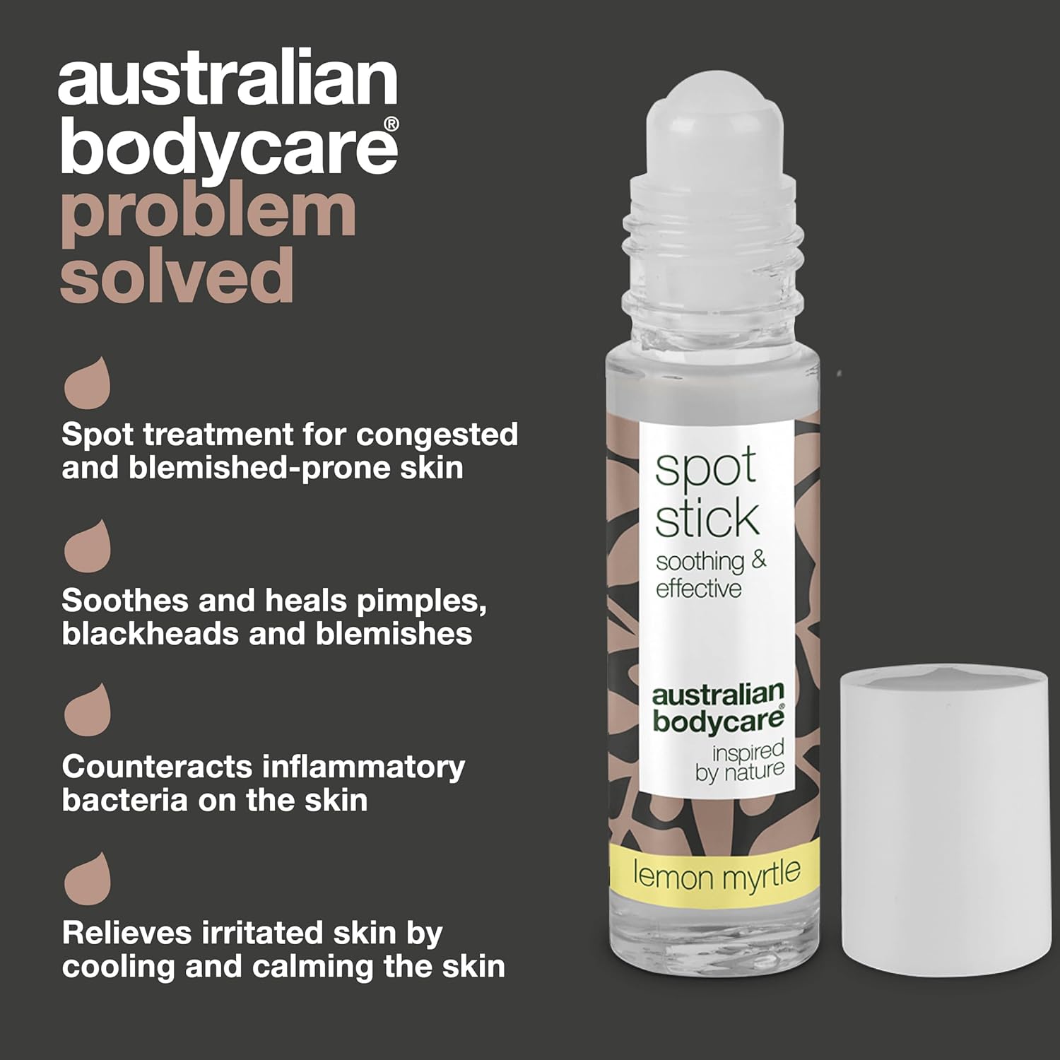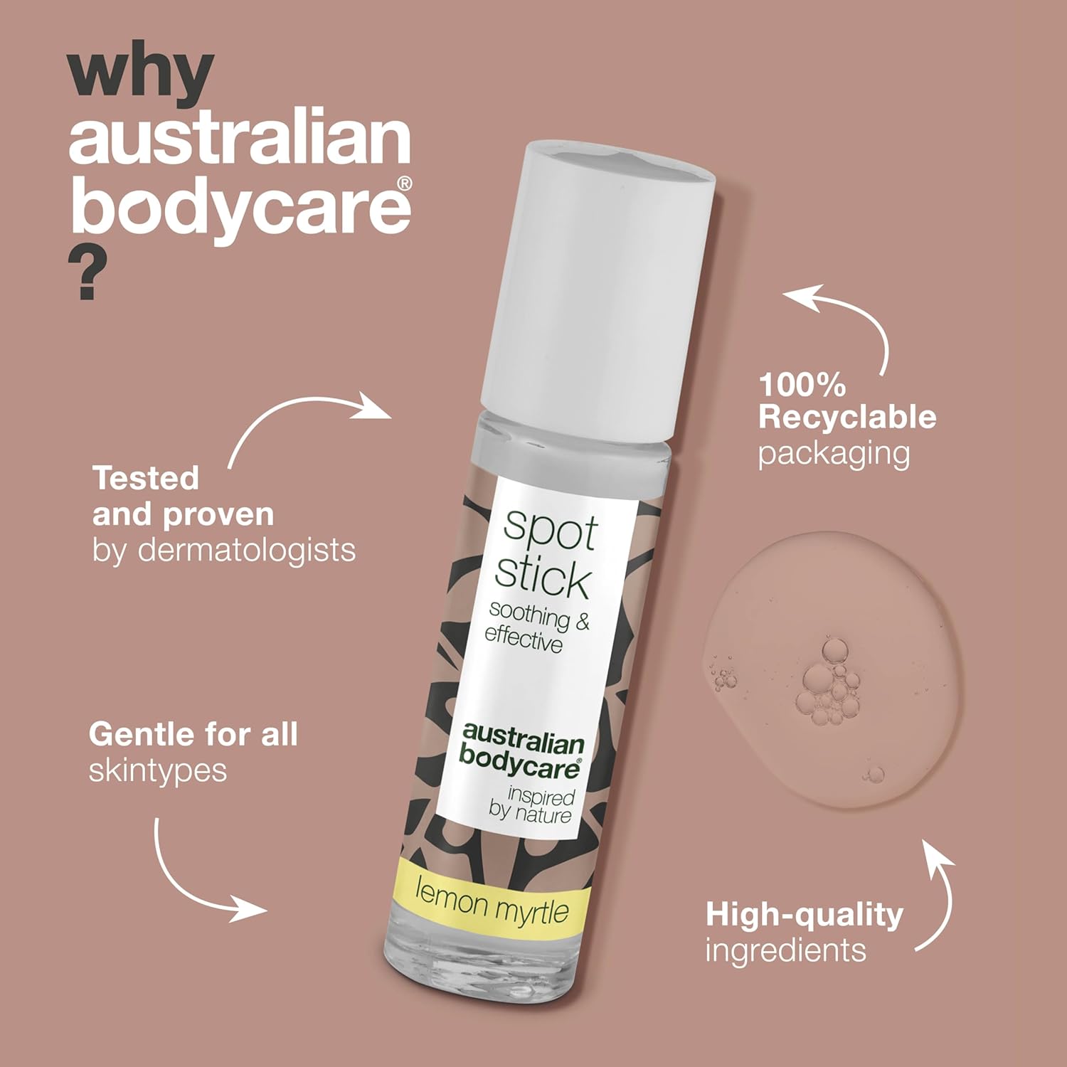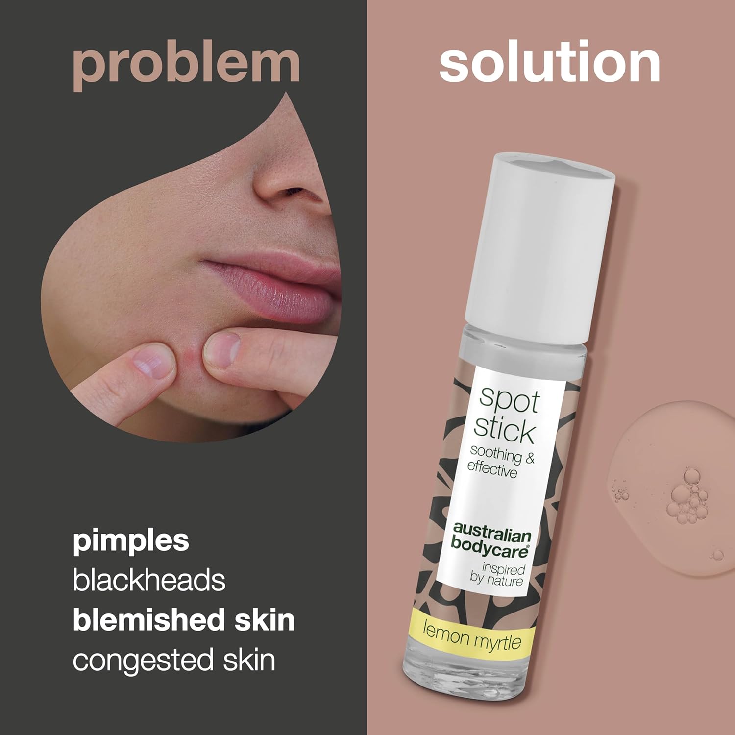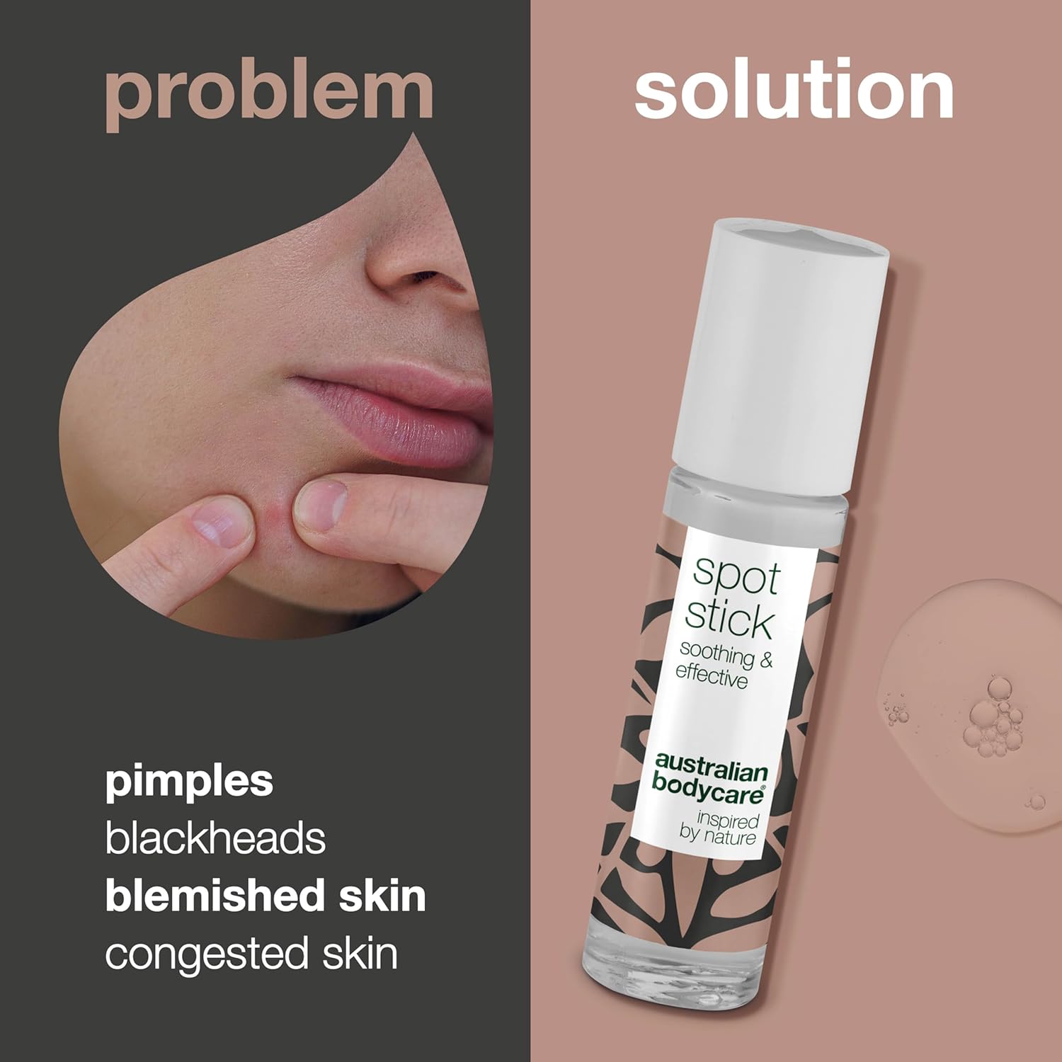 About this item ?? RESULTS: What can I expect and when If you use the Spot Stick at the first sign of a pimple, you should see results after 1-2 days. For the best results make sure to also use face wash and face cream from Australian Bodycare. If you havenât seen any signs of improvement after 2 weeks, send us a mail and receive a FULL REFUND! ?? HOW TO USE: How often should I use the products Antibacterial treatment in an easy to use Roller-Ball dispenser. Apply directly on affected areas two to four times daily or as needed. Use with, and without makeup. Perfect for the whole family. ?? PRODUCT INFO: The Spot stick contains âWitch Hazelâ which prevents the skin from drying out and tightens pores, in combination with high grade natural Tea Tree Oil. It is also used to cool and calm the skin. Dermatologically tested by experts. ?? SUITABILITY: Can be used by both genders. We have been developing problem-solving skin care products of superior quality for more than 30 years. We develop all our products using top?shelf ingredients. With regards to quality, we do not compromise. Our product is 100% vegan and contains natural active ingredients. âș See more product details,?? RESULTS: What can I expect and when If you use the Spot Stick at the first sign of a pimple, you should see results after 1-2 days. For the best results make sure to also use face wash and face cream from Australian Bodycare. If you havenât seen any signs of improvement after 2 weeks, send us a mail and receive a FULL REFUND!,?? HOW TO USE: How often should I use the products Antibacterial treatment in an easy to use Roller-Ball dispenser. Apply directly on affected areas two to four times daily or as needed. Use with, and without makeup. Perfect for the whole family,?? PRODUCT INFO: The Spot stick contains âWitch Hazelâ which prevents the skin from drying out and tightens pores, in combination with high grade natural Tea Tree Oil. It is also used to cool and calm the skin. Dermatologically tested by experts,?? SUITABILITY: Can be used by both genders. We have been developing problem-solving skin care products of superior quality for more than 30 years. We develop all our products using top?shelf ingredients. With regards to quality, we do not compromise. Our product is 100% vegan and contains natural active ingredients