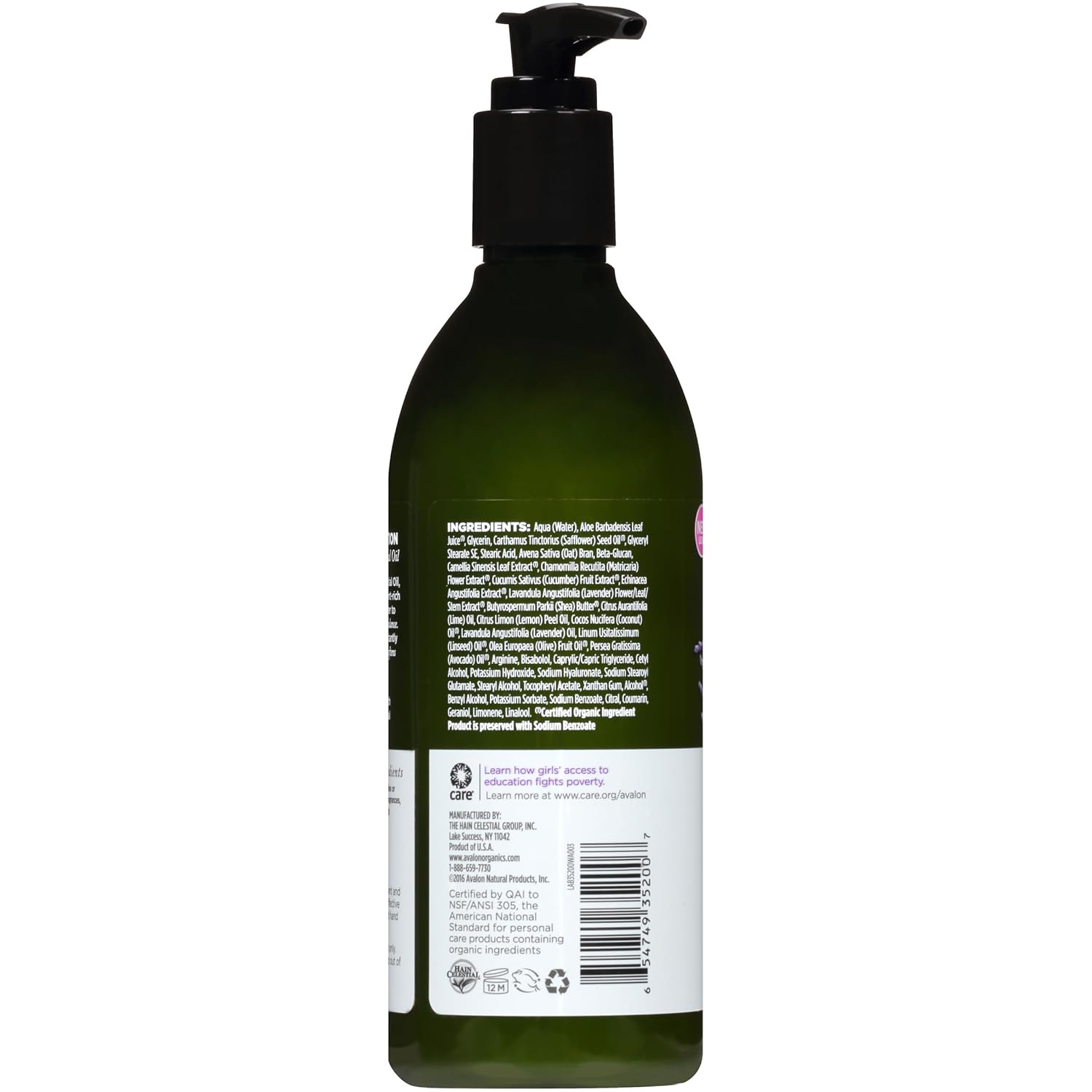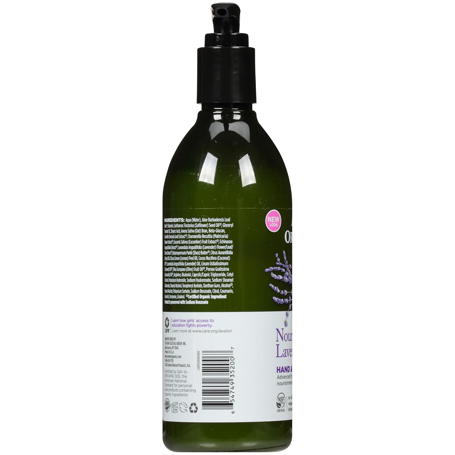 Deeply Nourish And Moisturize Extra Dry Skin With Avalon Organics Nourishing Lavender Hand & Body Lotion. Made With Organic Botanicals And Essential Oils, This Plant-Based Formula Replenishes And Rebalances Skin For Long Lasting Hydration. Lavender Essential Oil, Aloe, Plant Lipids And Nutrient-Rich Beta-Glucan Work Together To Restore The Skin'S Lipid Balance, Leaving It Feeling Soft And Supple. This Certified Organic Lotion Is Made With Non-Gmo Ingredients And No Parabens, Harsh Preservatives, Synthetic Colors Or Fragrances, Phthalates Or Sulfates. It Is Also Vegan And Not Tested On Animals. Includes Two 12 Oz. Bottles Of Avalon Organics Nourishing Lavender Hand & Body Lotion. Curated From NatureāS Pure Resources, Avalon Organics Nsf Organic Certified Skin Care, Hair Care And Bath & Body Products Are Deep-Rooted In A Profound Respect For The Earth. Combining Modern Science With The Botanical World, We Constantly Strive To Perfect Each Formula, Evolve Expertise And Deliver Innovation. Searching Out The Beautifying Benefits Hidden Within Each Plant, Avalon Organics Thoughtfully Develops Formulas To Not Only Nourish The Body, But Also Nourish The Mind And The Soul