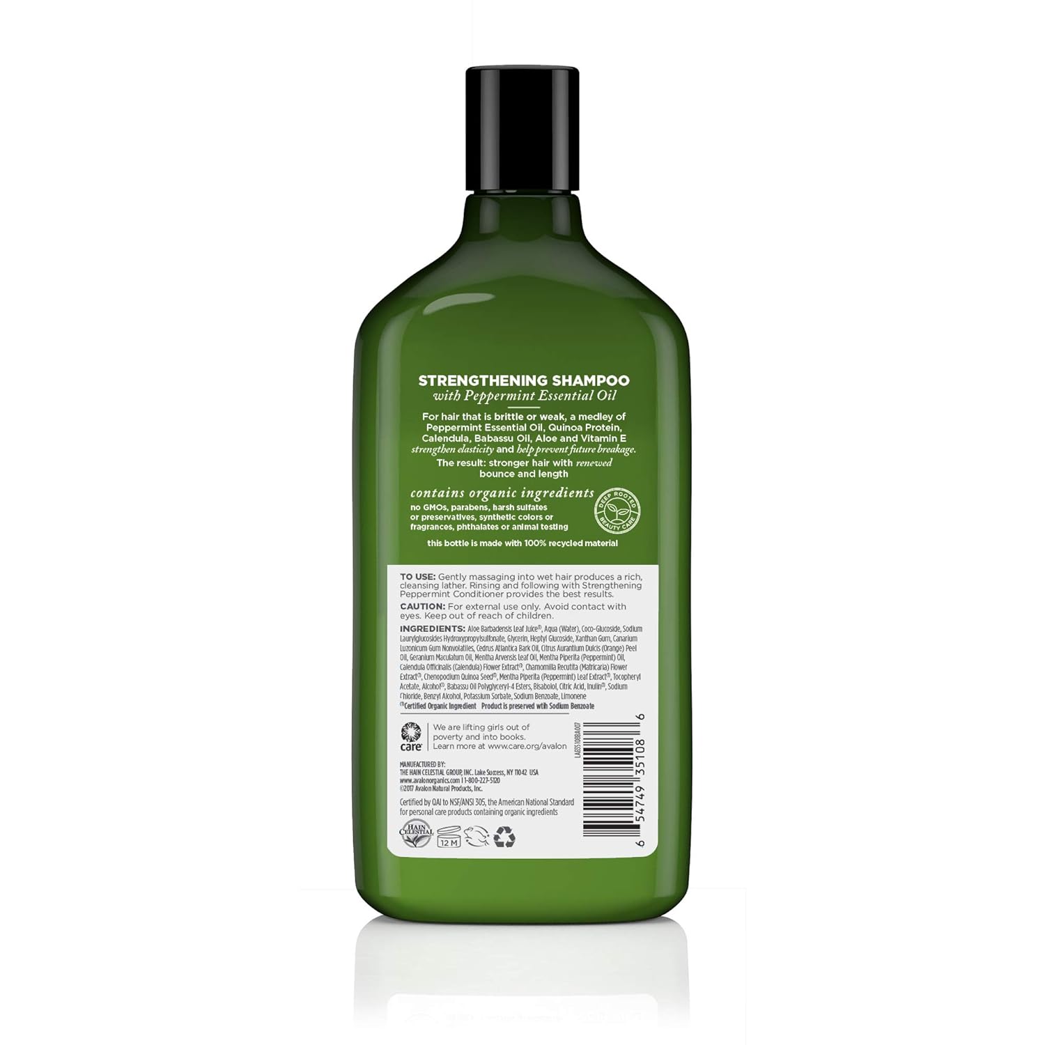 One 11 oz. bottle of Avalon Organics Natural Strengthening Peppermint Shampoo