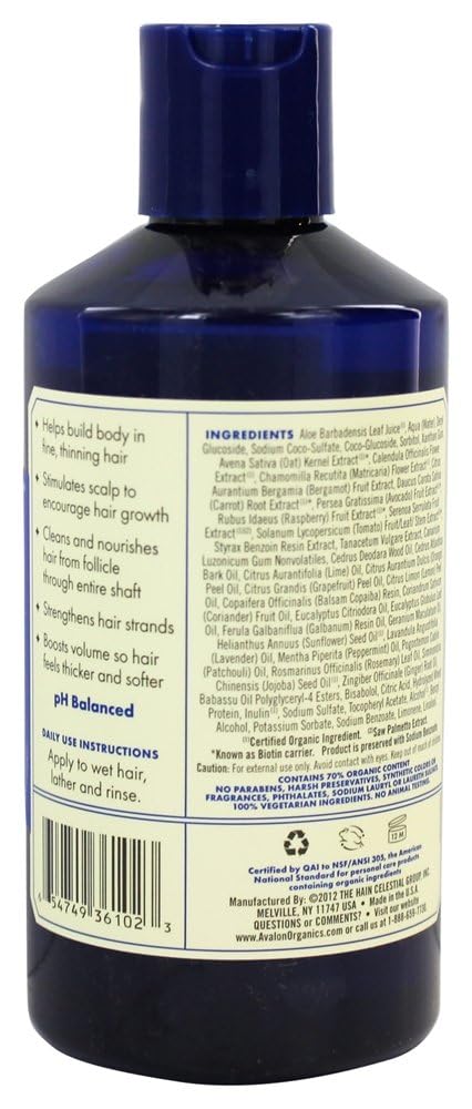 Massage Our Thickening Shampoo Through Wet Hair To Create A Rich, Cleansing Lather. After Rinsing, Follow With The Corresponding Conditioner For The Best Results. Style Your Hair As Usual And Enjoy A Clean, Fuller-Looking Head Of Hair With Body. All Avalon Organics Products Are Nsf Contains Organic Ingredients Certified, Committing To Our Promise Of Creating Products Containing Organic Ingredients