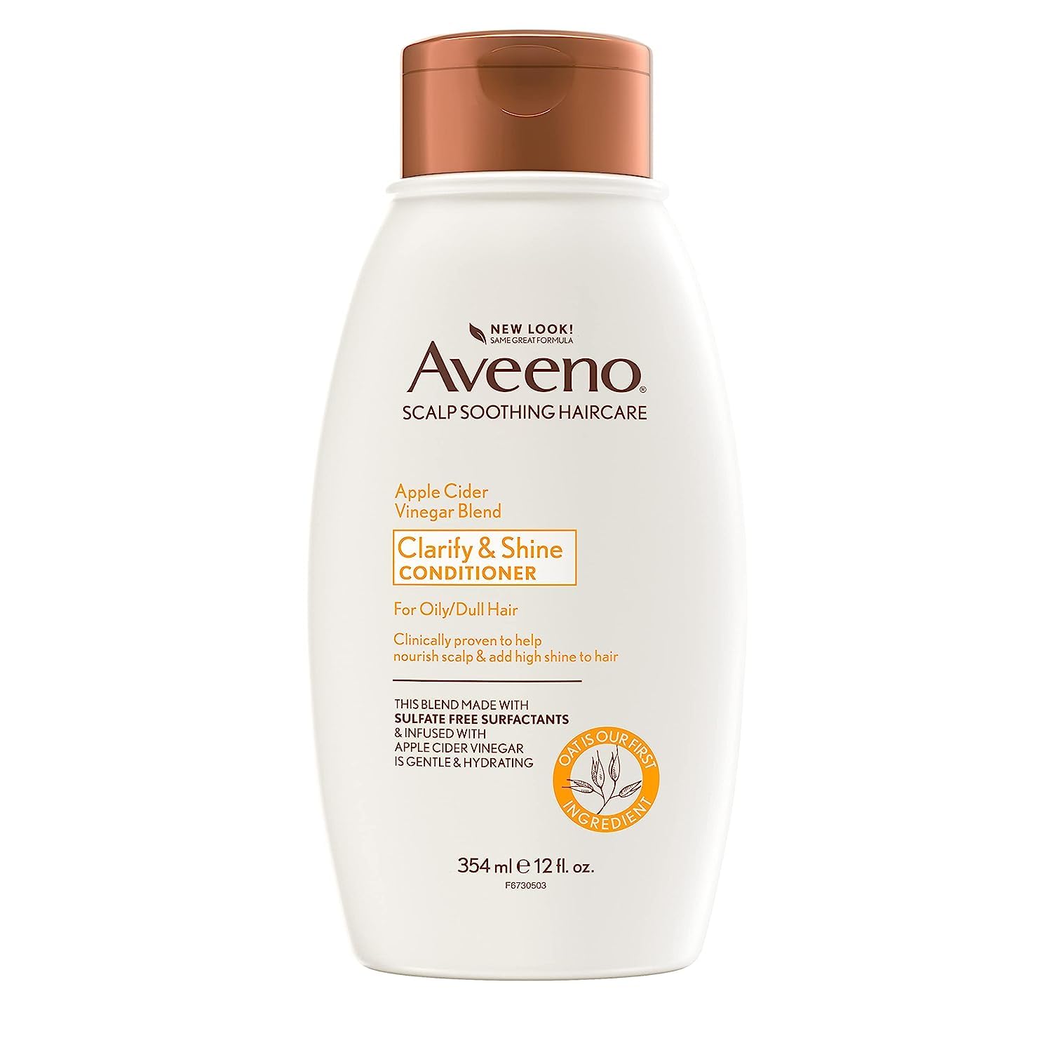 Aveeno Apple Cider Vinegar Sulfate-Free Conditioner For Balance & High Shine, Daily Moisturizing & Scalp Soothing Conditioner For Oily Or Dull Hair, Paraben & Dye-Free, 12Oz