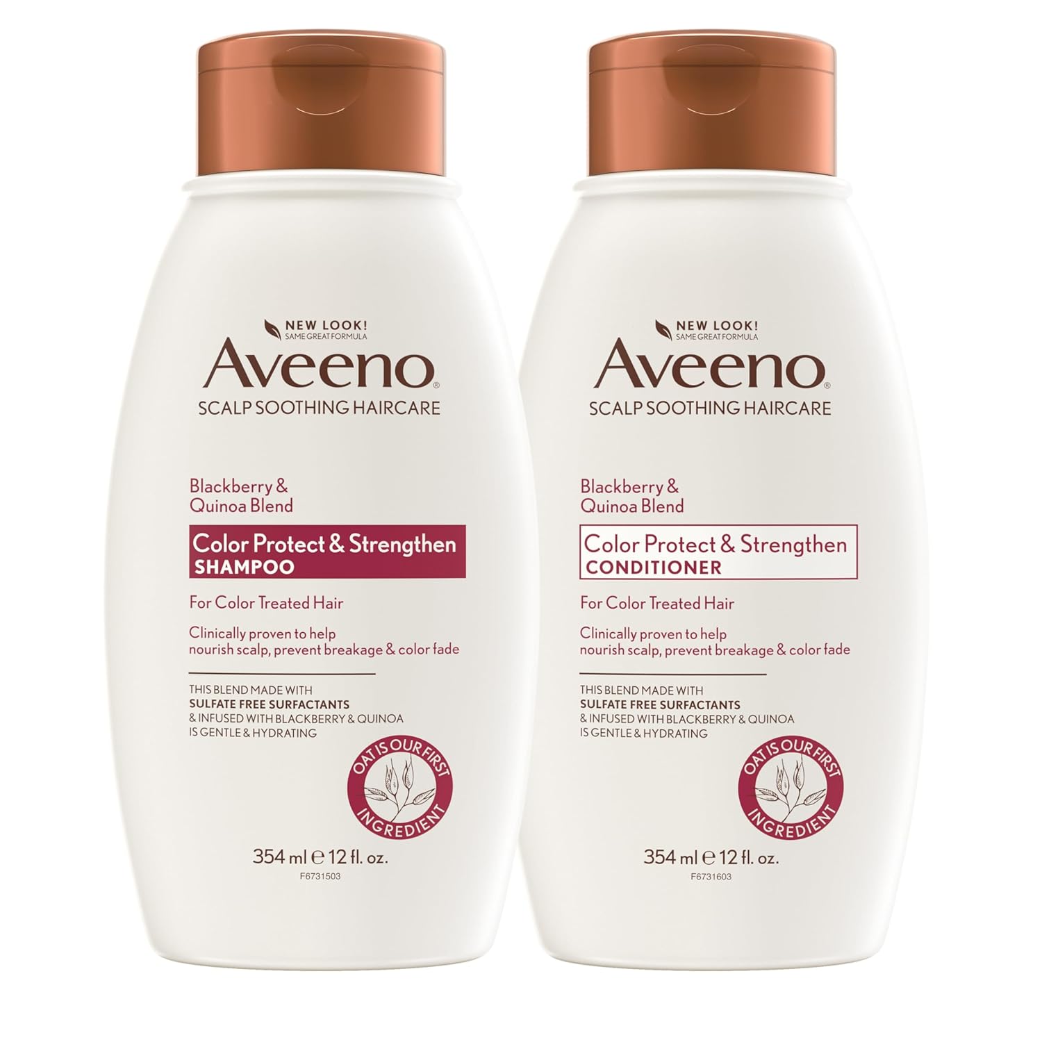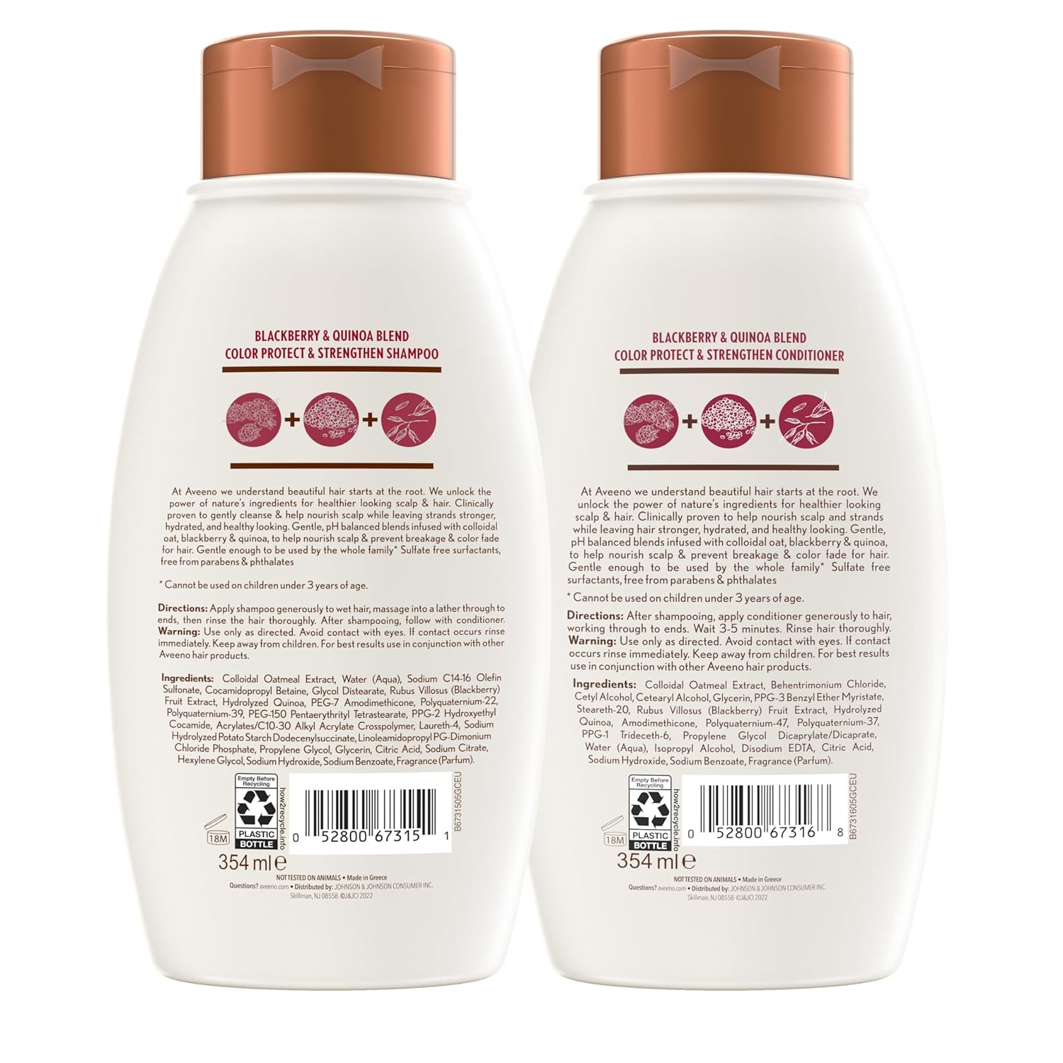 Aveeno Color Protect & Strengthen+ Blackberry & Quinoa Conditioner And Shampoo Set - Fresh Scent, 12 Fl Oz Each