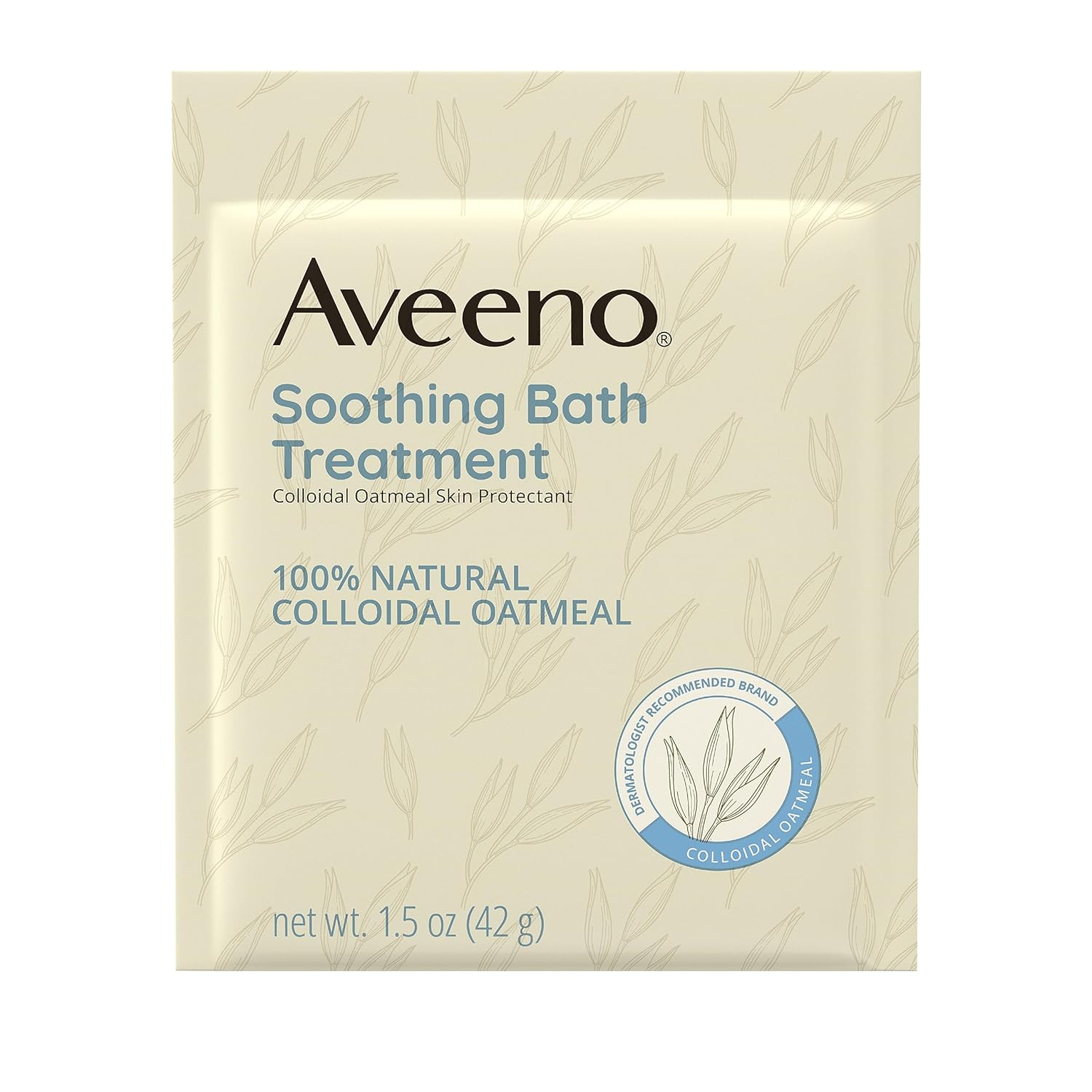 Aveeno Fragrance-Free Soothing Bath Treatment With 100% Natural Colloidal Oatmeal Helps Relieve Itchy, Irritated Skin Due To Poison Ivy, Poison Oak, Poison Sumac, Rashes, Insect Bites & Eczema. Recommended By Professionals, This Soothing Bath Soak Provides Relief Of Itchy, Irritated & Dry Skin While Soothing Prickly Heat (Heat Rash), Chicken Pox, Hives & Sunburn. Formulated With 100% Natural Colloidal Oatmeal, A Long Recognized Ingredient That Relieves Itching Naturally, The Soothing Bath Treatment Disperses In Bathwater To Treat Dry, Irritated Skin While Cleansing & Moisturizing, For Soft, Smooth, Healthy-Looking Skin. This Soothing Bath Soak Is Suitable For Eczema And Sensitive Skin Has Been Allergy Tested & Is Free Of Fragrance, Paraben, Dyes & Soap. From The Dermatologist-Recommended Brand For Over 70 Years, Use The Individually Wrapped Bath Packets Along With Aveeno Skin Relief Body Wash & Moisturizing Lotion To Soothe Your Entire Body