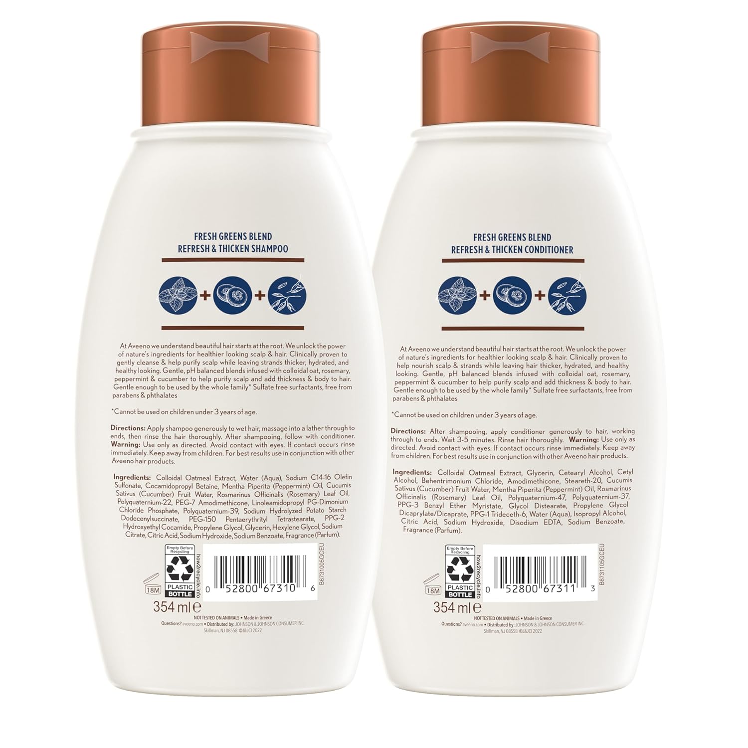 Aveeno Fresh Greens Shampoo + Conditioner With Rosemary, Peppermint & Cucumber To Thicken & Nourish, Clarifying & Volumizing Shampoo For Thin Or Fine Hair, Paraben-Free, 12 Fl Oz, 2 Count (Pack Of 1)
