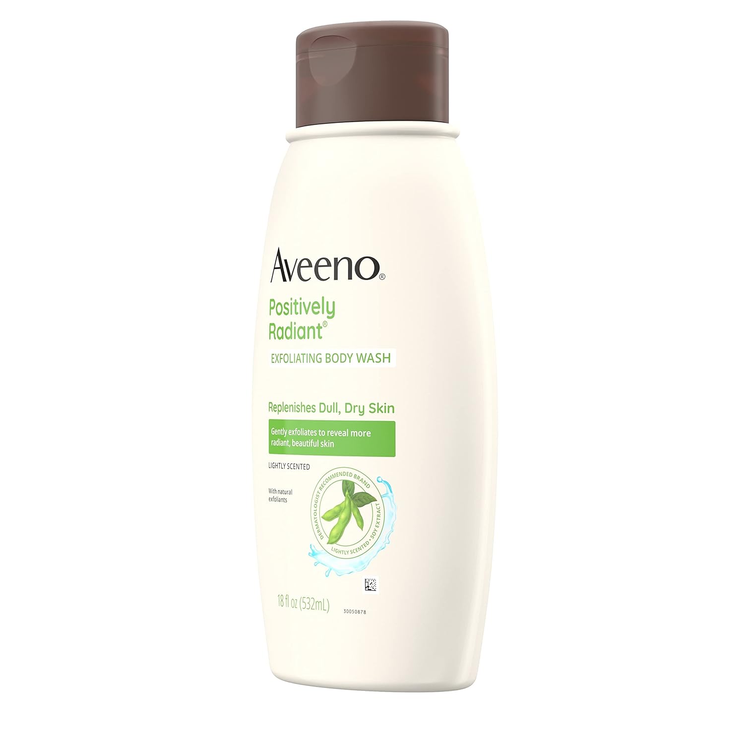 Aveeno Positively Radiant Exfoliating Body Wash With Soy Extract, Lightly Scented Body Cleanser Replenishes Dull, Dry Skin & Exfoliates To Reveal More Radiant, Beautiful Skin, 18 Fl. Oz