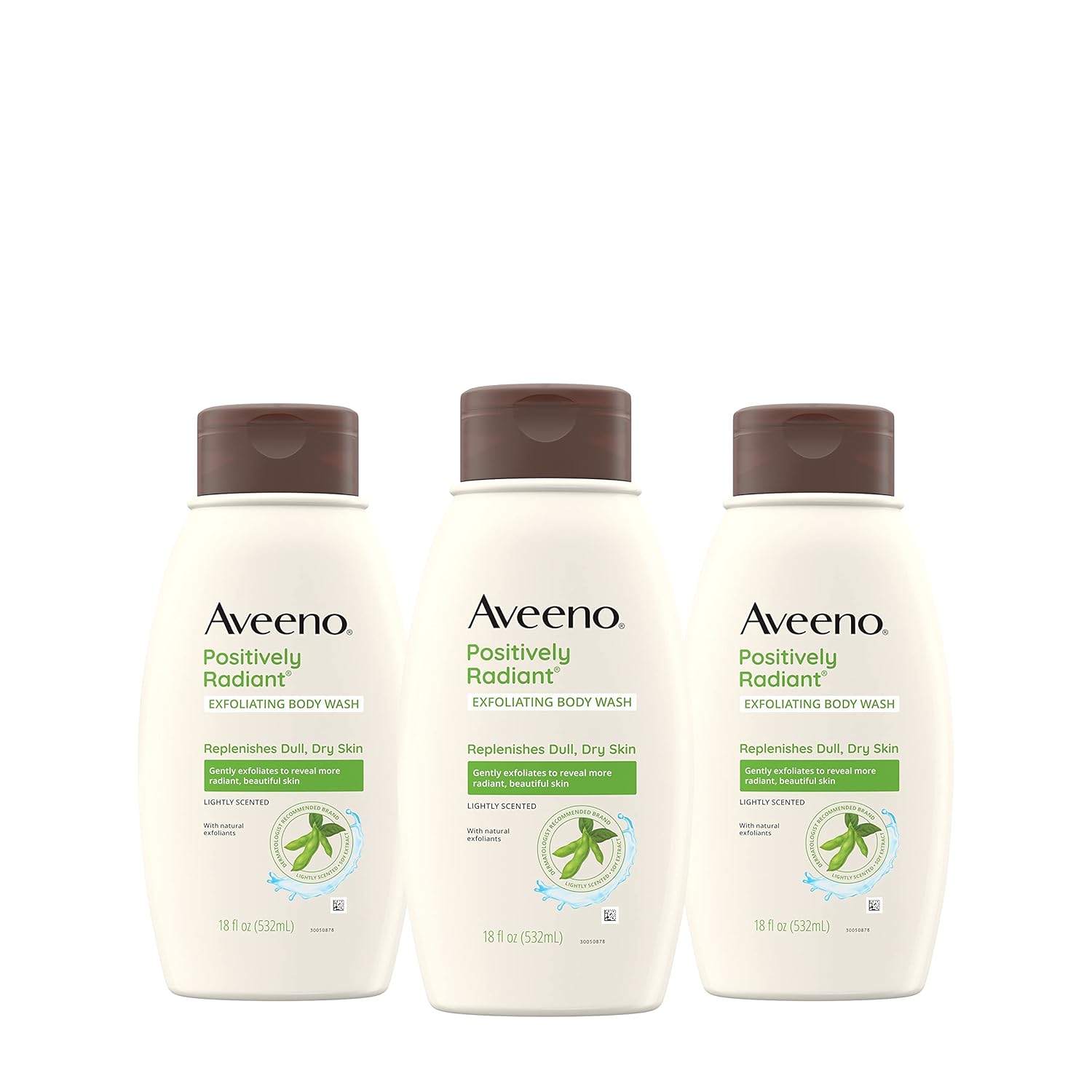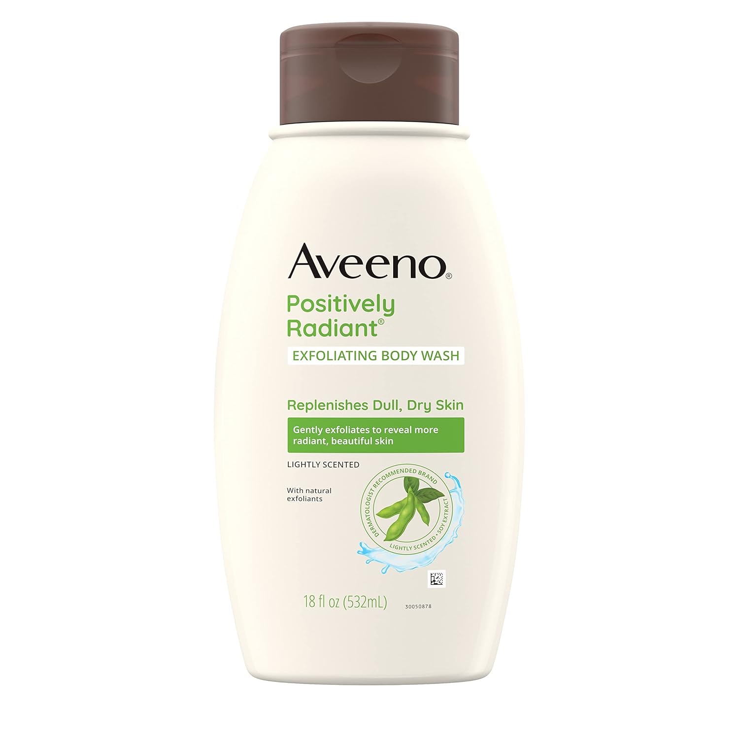 Reveal Healthy-Looking, More Radiant Skin With Aveeno Positively Radiant Exfoliating Body Wash. This Lightly Scented Exfoliating Body Wash Replenishes Dull, Dry Skin And Gently Exfoliates To Reveal More Radiant, Beautiful Skin. Its Unique Formula Features Soy Extract And Natural Exfoliants To Enhance Skin'S Radiance While Replenishing Dull, Dry Skin And Leaves Skin Looking Soft And Smooth. Suitable For Daily Use, Aveeno Positively Radiant With Soy Extract Gently Exfoliates For Soft, Smooth, Even-Toned Skin. The Exfoliating Body Cleanser Has A Gentle Formula That Is Lightly Scented, Has Been Allergy Tested And Is Free Of Parabens, Dyes And Soaps. From The Dermatologist-Recommended Brand For Over 70 Years, Aveeno Uses The Goodness Of Nature And The Power Of Science To Keep Your Skin Looking And Feeling Healthy And Balanced. Use Aveeno Positively Radiant Exfoliating Body Wash In Your Daily Skincare Routine To Improve The Look Of Dull Skin And Reveal Healthy-Looking Skin