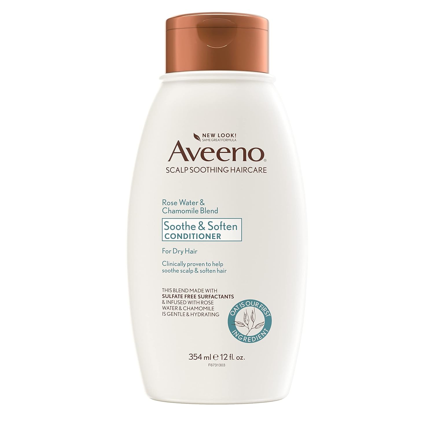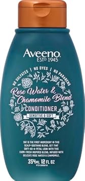 Aveeno Rose Water & Chamomile Blend Sulfate-Free Conditioner With Colloidal Oat For Dry Sensitive Scalp, Gentle Cleansing Conditioner For Fine, Fragile Hair, Paraben & Dye-Free, 12 Fl Oz