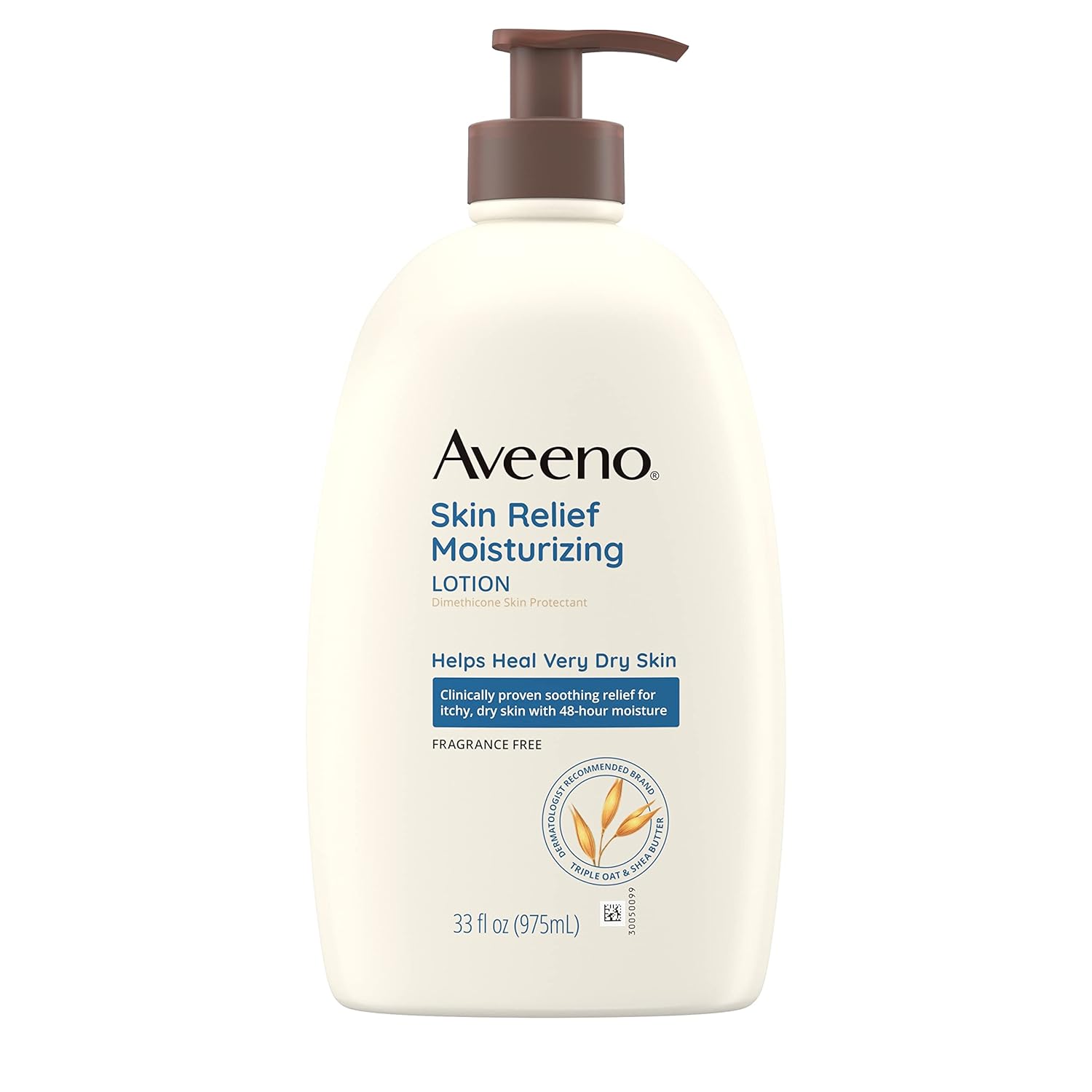 33-Fluid Ounces Of Aveeno Skin Relief Fragrance-Free Moisturizing Body Lotion With A Soothing Triple Oat And Shea Butter Formula Helps Heal Very Dry Skin And Provides Clinically Proven Relief For Itchy, Dry Skin With 48-Hour Moisture