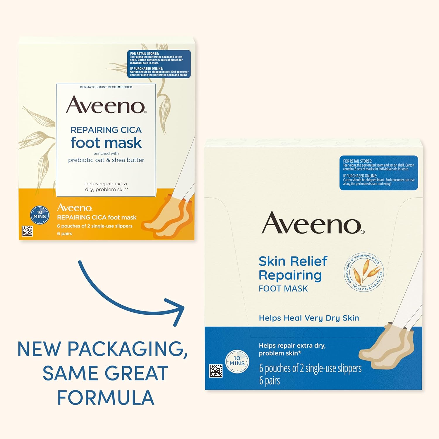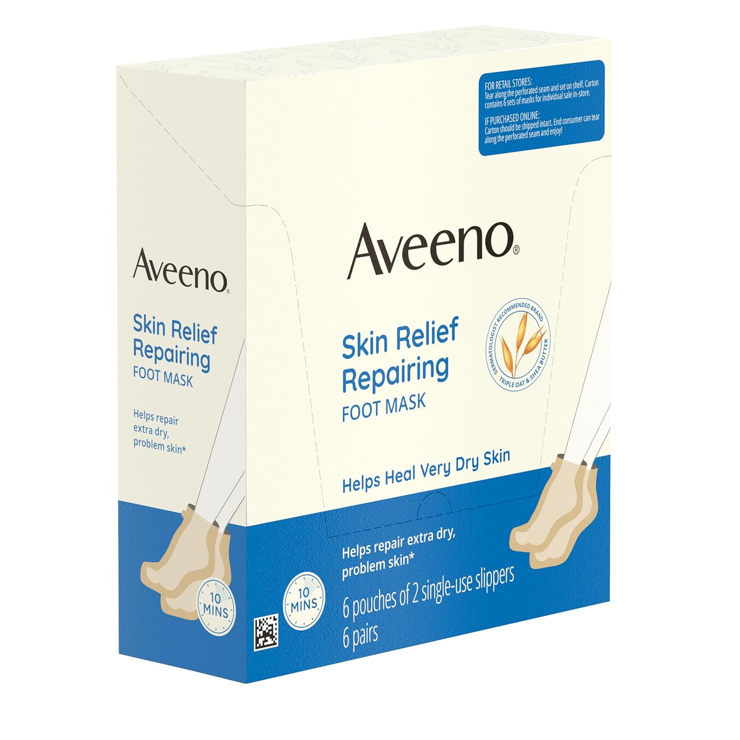 Help Heal Very Dry Skin On Your Feet With Aveeno Skin Relief Repairing Foot Masks, Single Use, No Drip Moisturizing Slippers. These Skin Relief Slippers Are Enriched With Shea Butter & Moisturizing Prebiotic Oat--Known To Have Nourishing Properties--To Help Restore Essential Moisture To Extra-Dry Skin, Leaving Your Feet Visibly Soft, Smooth, & Healthy-Looking. The Foot Mask Spa Socks Help To Restore Essential Moisture To Problem Skin,* And Are Infused With A Unique Formula That Helps Balance SkināS Natural Moisture Barrier. The Non-Comedogenic Slippers For Foot Care Are Easy To Use: Simply Wash & Dry Your Feet, Wear The Socks For Approximately 10 Minutes, & Remove--No Need To Rinse. The Non-Greasy Foot Care Masks Are Designed To Care For Dry, Sensitive Skin & Are Formulated Free Of Fragrance, Parabens & Dyes. Give Your Dry Feet Some Much Needed Relief With Moisturizing Foot Masks From Aveeno, A Dermatologist Recommended Brand For Over 70 Years. *Problem Skin Is Defined As Extra Dry Skin