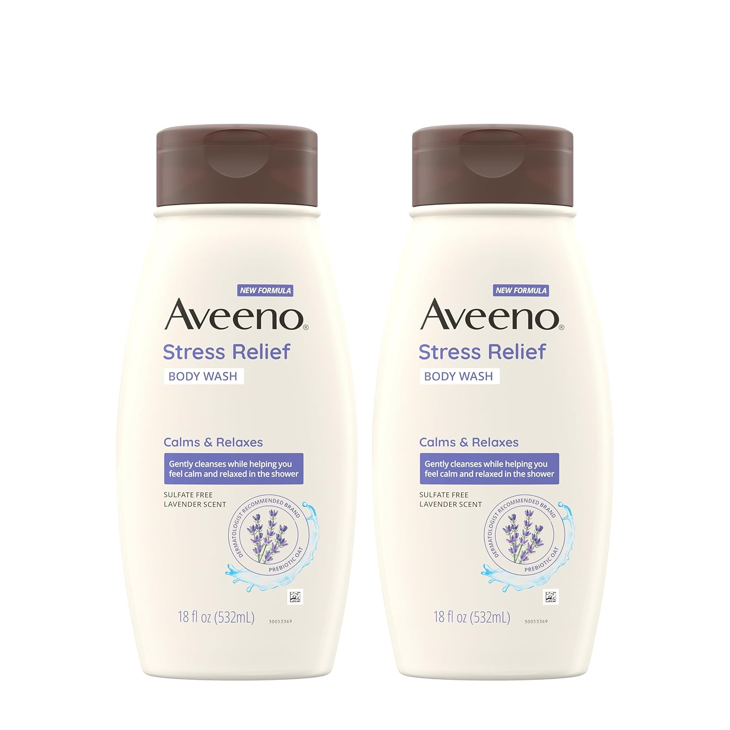 Twin Pack Of Two, 18-Fluid Ounce Value Size Bottles Of Aveeno Stress Relief Body Wash With Oat & Calming Lavender Scent Gently Cleanses While Removing Dirt, Oil & Impurities.Daily Body Wash Is Clinically Shown To Help Calm & Relax You In The Shower