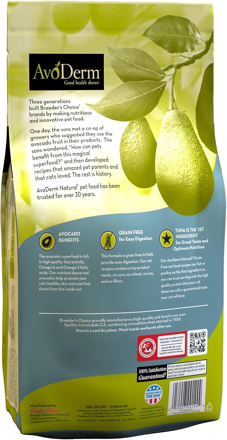Avoderm Natural Grain Free Cat Food Was Created To Provide A Flavor Cats Will Crave Along With The Nutrients They Need For Optimal Health. Every Recipe Starts With Fish Or Poultry As The First Ingredient And Combines Wholesome Ingredients To Provide A Nutritious Food. Pet Parents Have Marveled About Avoderm Natural Cat Food. Here’S Why: Tuna Is The 1St Ingredient For Great Taste & Optimum Nutrition Our Avoderm Natural Grain Free Cat Food Recipes Use Fish Or Poultry As The First Ingredient So You Can Trust Serving Only The High Quality Protein That Your Cat Deserves With A Guaranteed Taste Your Cat Will Love. All Our Formulas Provide Healthy Balanced Nutrition For Your Cat. High Quality Ingredients Ensure That You Are Providing The Optimum Nutrition Your Pet Needs. Grain Free For Easy Digestion This Formula Is Grain Free And Gluten Free To Help Provide Easy Digestion. Our Cat Recipes Contain No By-Product Meals, No Corn, No Wheat, No Soy, And No Fillers. For Healthy Skin & Coat With Omega Rich Avocados Avoderm Natural Cat Food Is Formulated To Be Rich In High Quality Fats And Oils With Balanced Omega-6 And Omega-3 Fatty Acids. We Use Nutrient Dense California Avocados And Avocado Oil To Promote Good Health And A Healthy Skin And Coat That Shows From The Inside Out