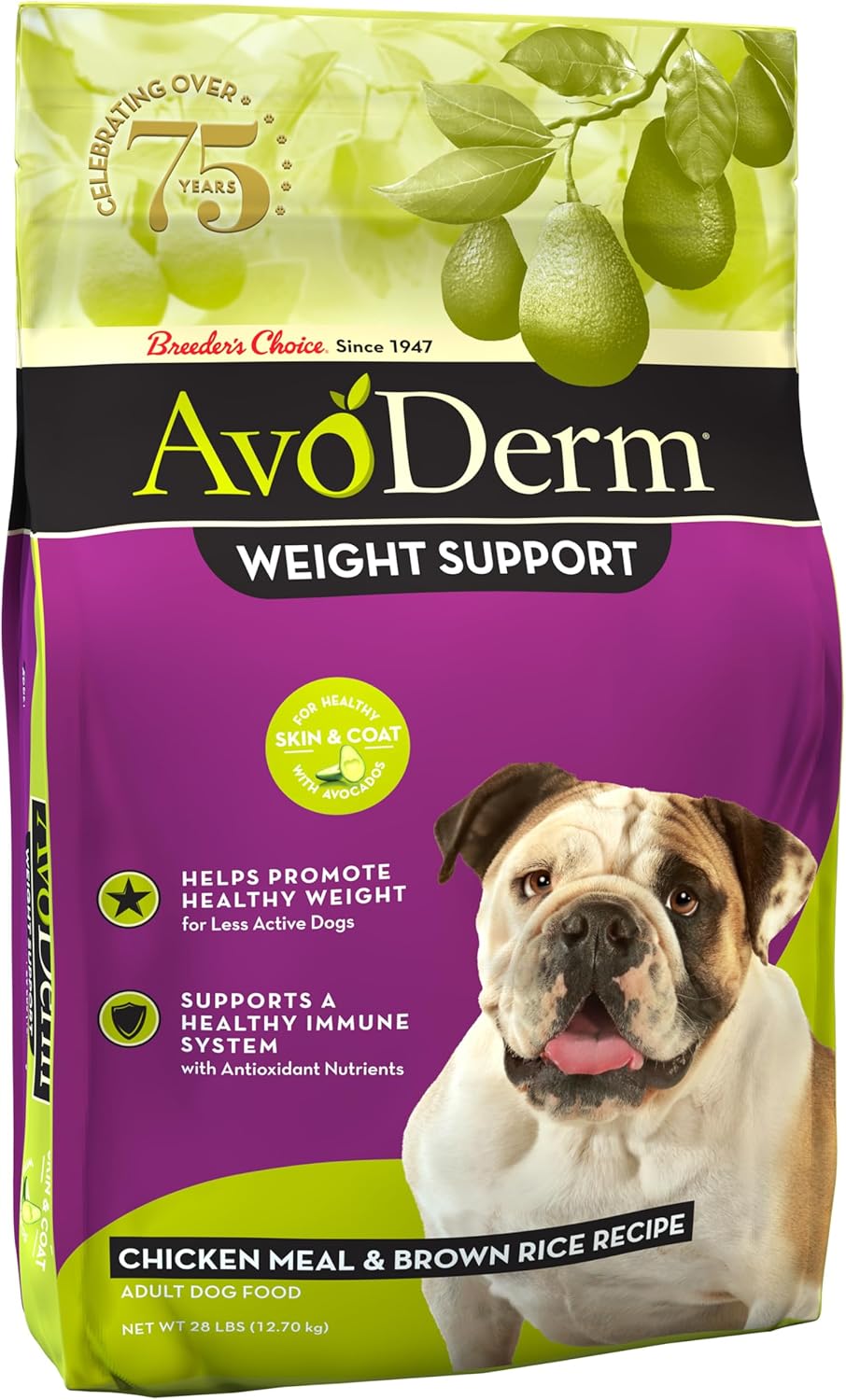 Keeping Your Dog Healthy Also Includes Maintaining A Healthy Weight. Avoderm Natural Brown Rice & Chicken Meal Weight Control Dry Dog Food Provides The Necessary Ingredients To Keep Your Dog Healthy And Happy While Helping Them Lose Weight. Our Secret Simple, The Weight Management Recipe Contains 25% Less Fat Than Our Leading Avoderm Natural Chicken Meal & Brown Rice Adult Dog Food While Maintaining The Winning Flavor. All The Same Great Taste, With Less Fat, Is Our Winning Formula To Promote Healthy Weight And Lifestyle. Serve Up Our Chicken Meal Weight Management Adult Dog Food And See The Results. Our Specialty Weight Management Formula Is Crafted For Adult Dogs That Are Less Active Or Just Need To Shed A Few Pounds. Avoderm Natural Dog Food Provides Essential Proteins To Help Your Dog Maintain Their Quality Of Life, Even As They Lose Weight. We Top Off Our Premium Formulas With Omega-Rich Avocados. These Nutrient Dense Superfoods Help Promote Good Health And Healthy Skin To Keep Your Dog'S Coat Shining All Season Long. Help Your Dog Get To His Optimal Weight By Serving Up Brown Rice And Chicken Meal Weight Control Dog Food. With Every Bite Of Our Reduced Fat Kibble, Your Dog Will Be On His Way To A Healthier Life. Our Adult Dry Food Is Pressure Cooked To Ensure Your Dog Receives The Optimum Nutrition From The High Quality Ingredients. This Includes Vitamins, Minerals And Antioxidant Nutrients To Help Support Your Dog'S Immune Function And Health. Feel Confident When Feeding Your Dog Avoderm Natural. Our Formulas Never Include Meat-By-Products, Artificial Flavors Or Preservatives. Serve Your Dog Avoderm Natural Regularly To Sustain The Highest Level Of Nutrition While Maintaining A Healthy Weight. Deliver All The Great Taste They Crave And All The Nutrition They Need With Less Of The Fat