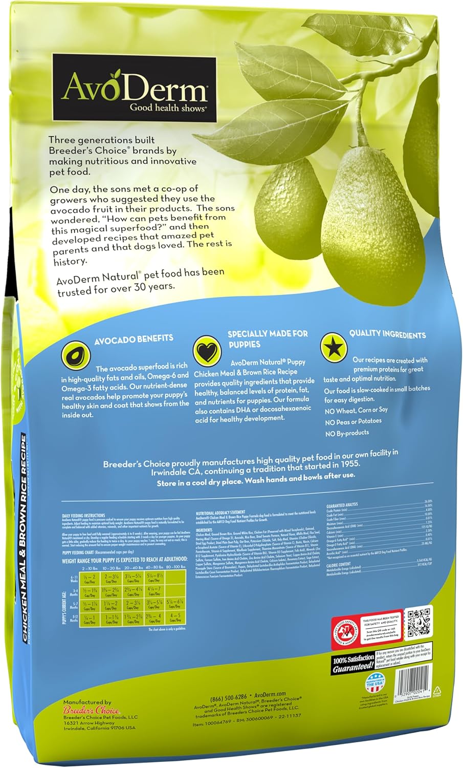 Avoderm Puppy Dry Dog Food, Dha For Brain & Eye Development, Chicken & Brown Rice Formula, 26Lb Bag
