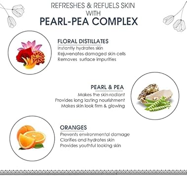 Enriched with pure hyderabadi pearls (mukta pisht), amplified with the advance pearl- pea complex, refreshes skin with floral distillates