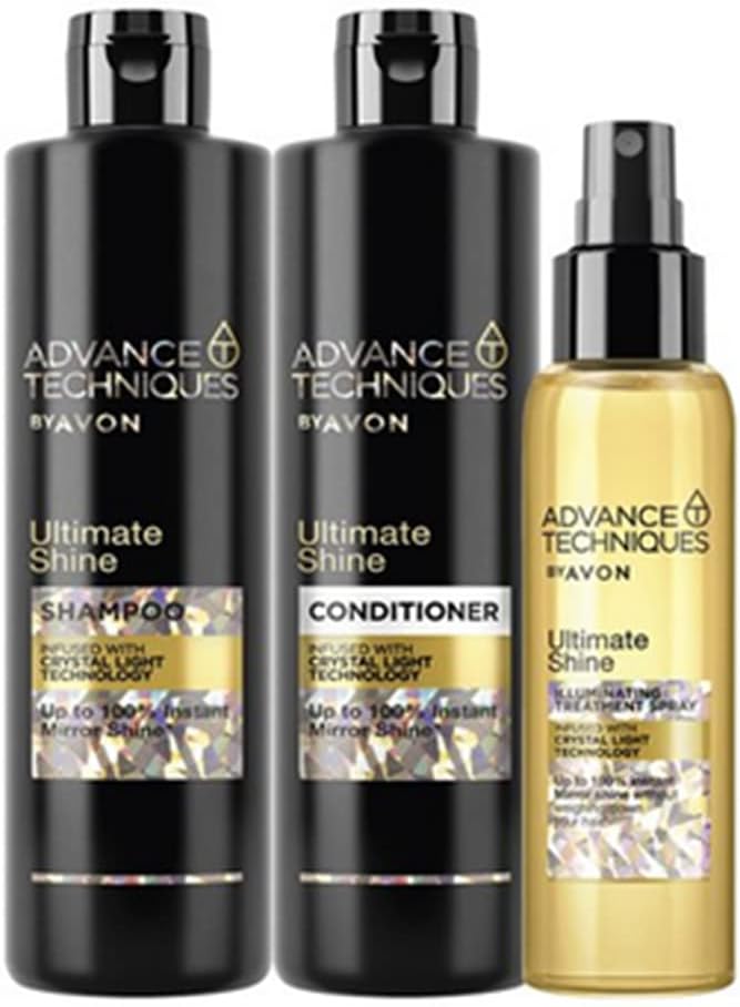 Avon Advance Techniques Ultimate Shine Collection Includes Shampoo 250Ml, Conditioner 250Ml, And Illuminating Treatment Spray 100Ml