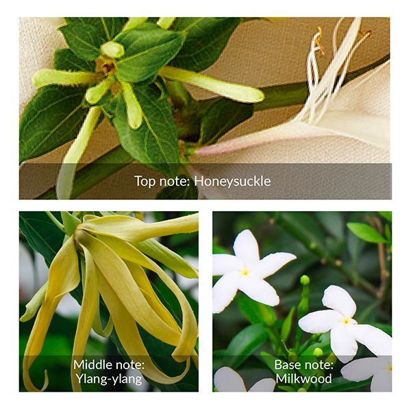 -Top note: Honeysuckle -Middle note: Ylang-ylang -Base note: Milkwood -Scent family: Oriental & floral
