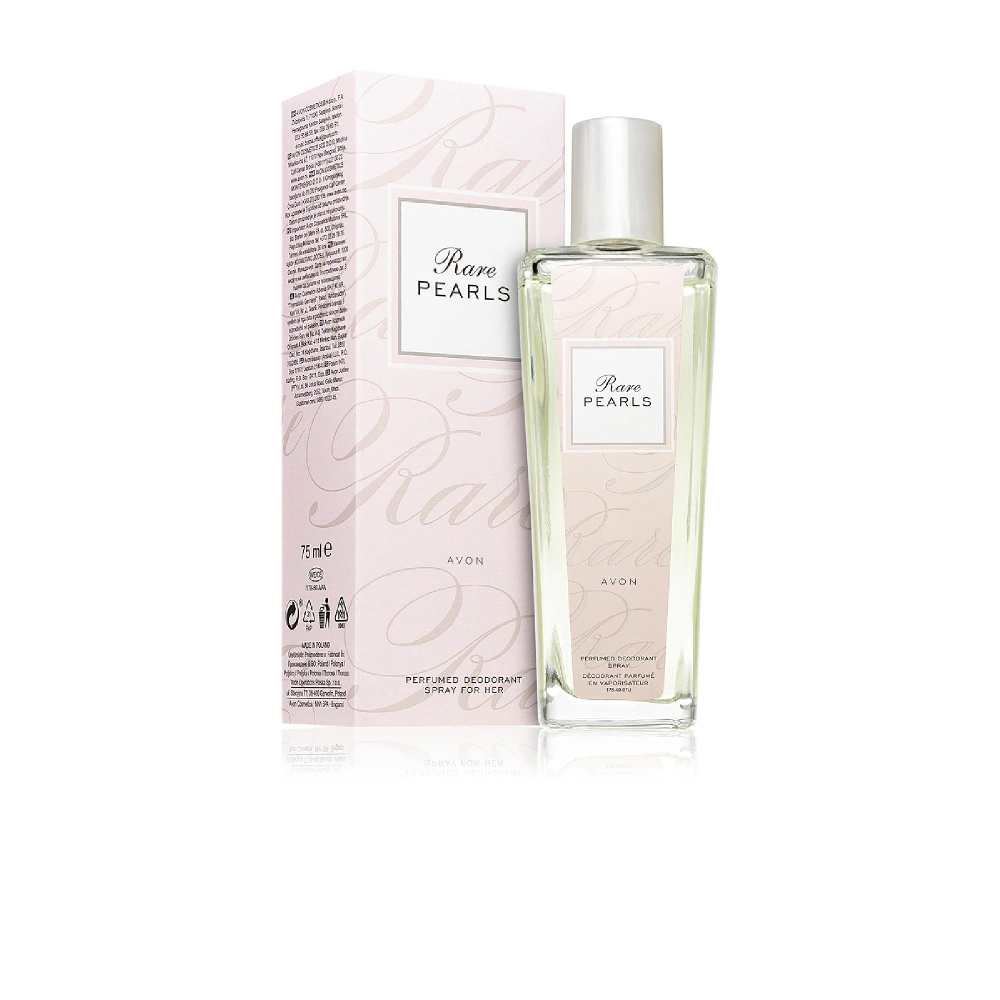 Composition:Magnolia, Rosewood, Sandalwood&Fragrance Category:Floral, Woody Avon Rare Pearls Body Spray For Women Is A Perfect Companion For The Fragrance From The Same Line. You Can Put On The More Concentrated Fragrance In The Morning And Then Refresh The Scent By Using The Body Spray During The Day. Woody Fragrance Floral Fragrance For Temperamental Women Full Of Energy Suitable For Everyday Wear About The Brand:Class Avon Avon Products Are Legendary In The World Of Beauty. This Brand Has Been Focussing On Beauty As Well As Women Themselves For More Than 125 Years And Offering Avon Skin Care, Makeup And Fragrance. In 1886, The Travelling Book Salesman David Mcconnell Started Adding A Little Beauty Freebie To Every Book He Sold. Soon, His Fragrances Were More Popular Than The Books, Which Prompted Him To Open His Own Little Beauty Company. But He Never Stopped Believing In The Power Of Personal Touch – And So The Idea Of The First Avon Lady Came To Be, Offering Women A Way Towards Financial Independence. The Avon Catalogue Also Became A Trademark Staple Of The Company’S Personal Approach. Today, Avon Beauty Is Available Online, But It Never Stopped Selling Its Products Through Personal Contact. Choose Your Preferred Way Of Purchase And Try This Well-Trusted Brand. Their Flagship Lines Are The Anew Products, Advance Techniques Hair Care, Luxe Premium Line, Planet Spa Body Care And The Avon Baby Line. Review Avon Rare Pearls How We Collect Reviews / / Perfumes / Women’S Perfumes / Body Sprays Avon Rare Pearls Scented Body Spray For Women £ 9.60 41% More Advantageous Price 75 Ml £ 5.60 In Stock | £ 7.47 / 100Ml, Incl. Vat | Code: Avo08952 Quantity 1 1 2 3 4 5 6 7 8 9 10 Add To Basket Add To Favourites Dpd Pickup Thursday 15/05/2025 Maximum Price The Product Was Sold At In The Last Two Years. More Information