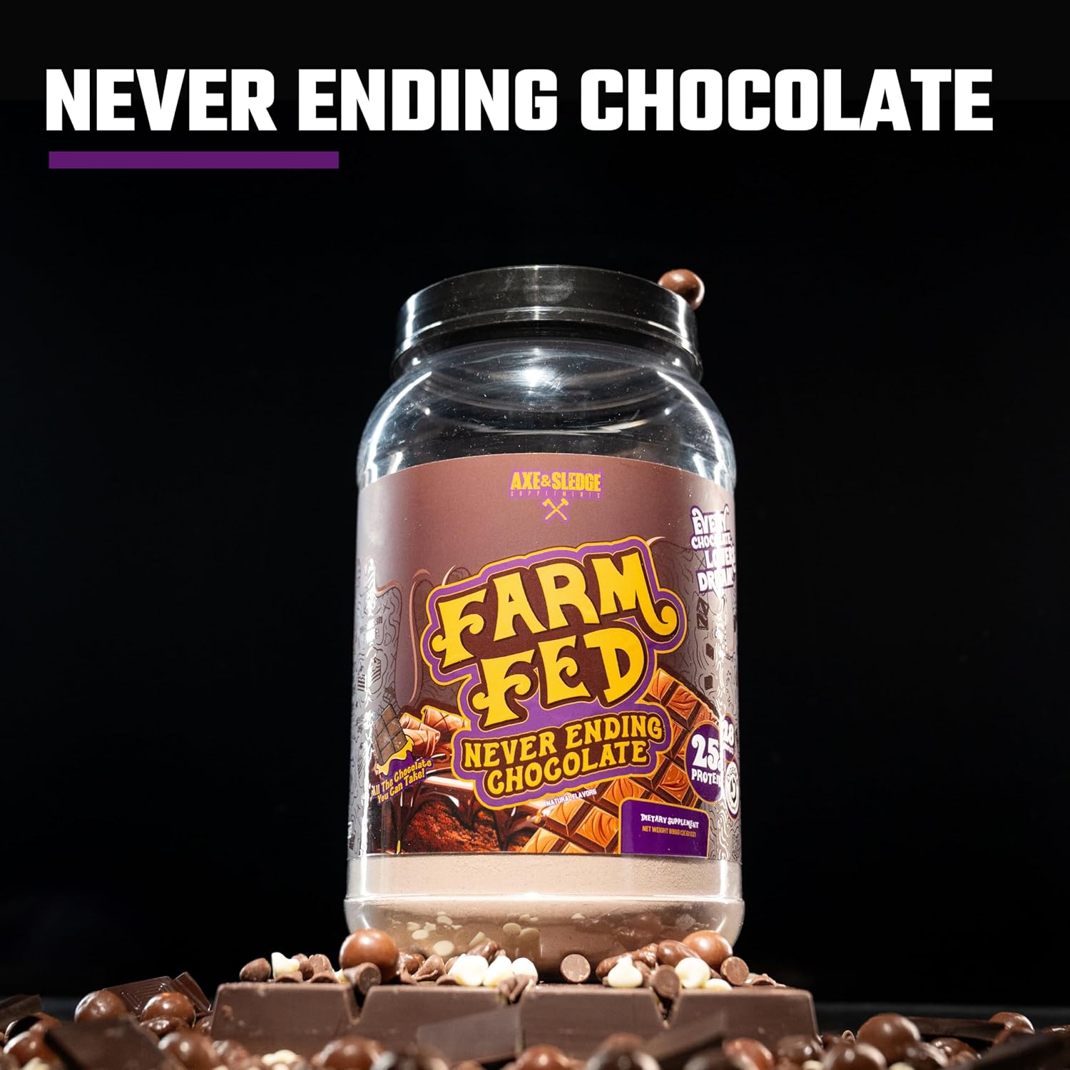 About this item PURE PROTEIN POWER: Farm Fed delivers 25g of top-tier whey protein isolate per serving, giving you the purest, fastest-digesting protein for muscle growth and recovery. It’s lean, mean, and packed with the essential nutrients your body craves. ENHANCED ABSORPTION: We’ve added 100mg of Digeseb digestive enzymes to help your body absorb every gram of protein. Say goodbye to bloating and discomfort and hello to superior nutrient absorption and gut health! LEAN, CLEAN & MEAN: With only 1g of fat, 2g of carbs, and 1g of sugar per serving, Farm Fed is the perfect choice for anyone looking to build muscle while keeping their macros in check. Low fat, low sugar, high performance – that’s the Axe & Sledge way. MADE FOR EVERYONE: Whether you’re a seasoned athlete or just starting your fitness journey, Farm Fed’s 100% whey protein isolate is your ideal partner. Non-GMO, naturally rich in BCAAs & EAAs – it’s designed for maximum performance in every scoop. GOURMET FLAVORS THAT ROCK: Who says protein has to taste bland Farm Fed comes in several mouth-watering flavors to satisfy your cravings and make hitting your daily protein goals an absolute treat. Take your gains to the next level, one scoop at a time! › See more product details,PURE PROTEIN POWER: Farm Fed delivers 25g of top-tier whey protein isolate per serving, giving you the purest, fastest-digesting protein for muscle growth and recovery. It’s lean, mean, and packed with the essential nutrients your body craves,ENHANCED ABSORPTION: We’ve added 100mg of Digeseb digestive enzymes to help your body absorb every gram of protein. Say goodbye to bloating and discomfort and hello to superior nutrient absorption and gut health!,LEAN, CLEAN & MEAN: With only 1g of fat, 2g of carbs, and 1g of sugar per serving, Farm Fed is the perfect choice for anyone looking to build muscle while keeping their macros in check. Low fat, low sugar, high performance – that’s the Axe & Sledge way,MADE FOR EVERYONE: Whether you’re a seasoned athlete or just starting your fitness journey, Farm Fed’s 100% whey protein isolate is your ideal partner. Non-GMO, naturally rich in BCAAs & EAAs – it’s designed for maximum performance in every scoop,GOURMET FLAVORS THAT ROCK: Who says protein has to taste bland Farm Fed comes in several mouth-watering flavors to satisfy your cravings and make hitting your daily protein goals an absolute treat. Take your gains to the next level, one scoop at a time!
