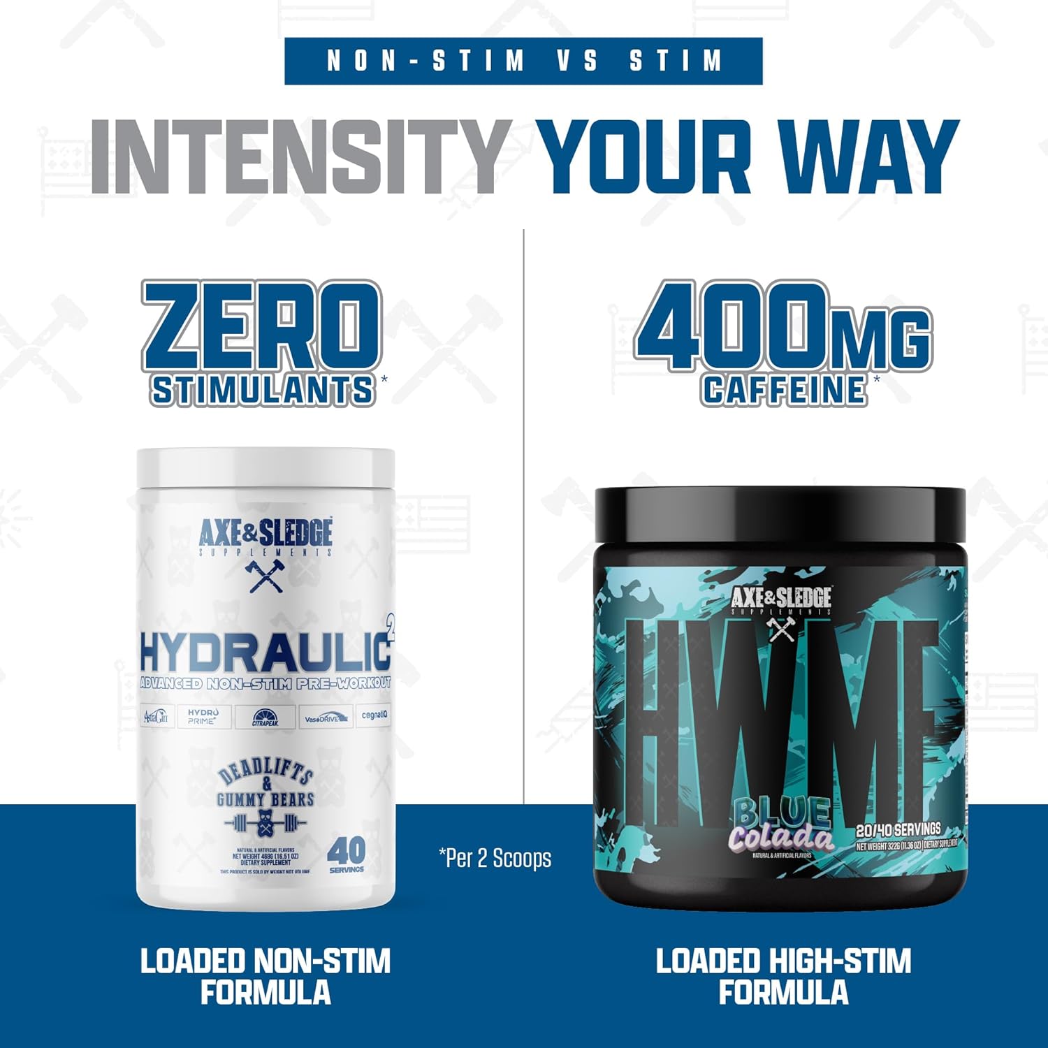 Axe & Sledge Hydraulic Stim-Free Pre-Workout Powder For Men & Women | Performance, Stamina, Focus, Pumps | L-Citrulline, Beta Alanine, Creatine, Caffeine-Free, Deadlifts & Gummy Bears