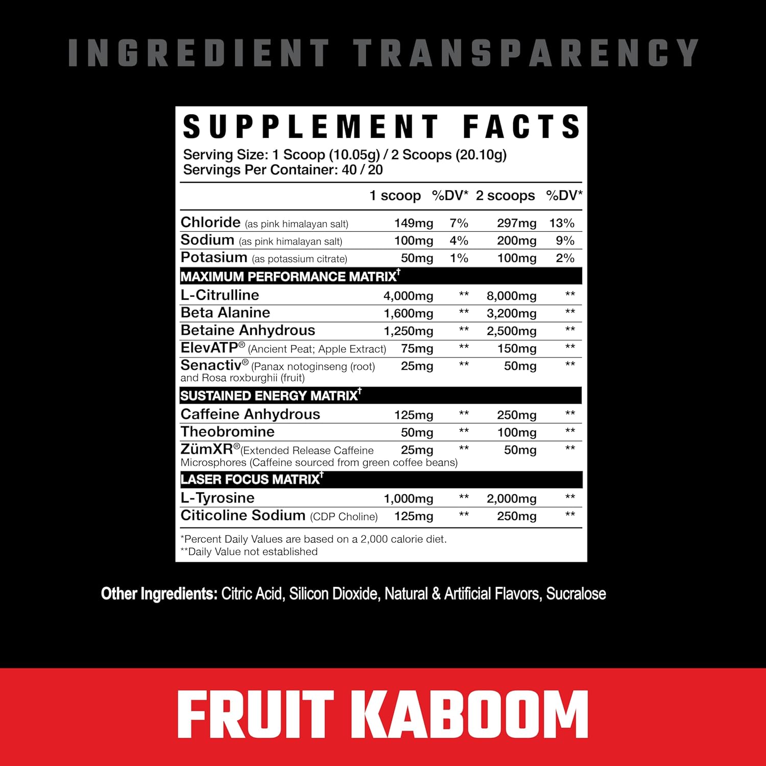 SHARP FOCUS & CLARITY: 2g of L-Tyrosine and 250mg of CDP-Choline enhance cognitive function, providing laser-sharp focus, mental clarity, and improved reaction times during your workouts, so you can stay dialed-in and crush every set
