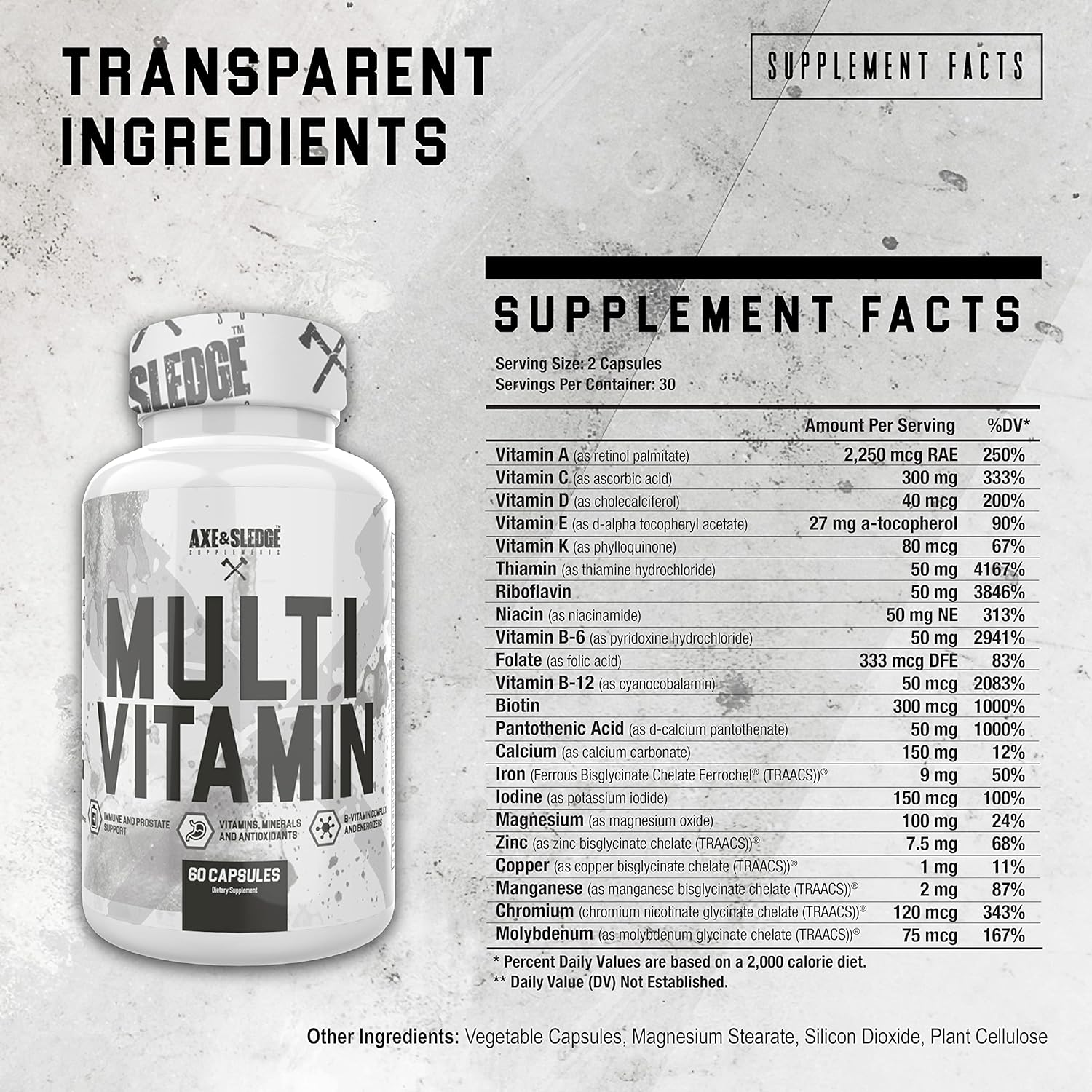 DESCRIPTION : Axe & Sledge Supplements Multivitamin, Vitamin, Mineral & Antioxidant Complex, 60 Veggie Capsules, 30 Servings