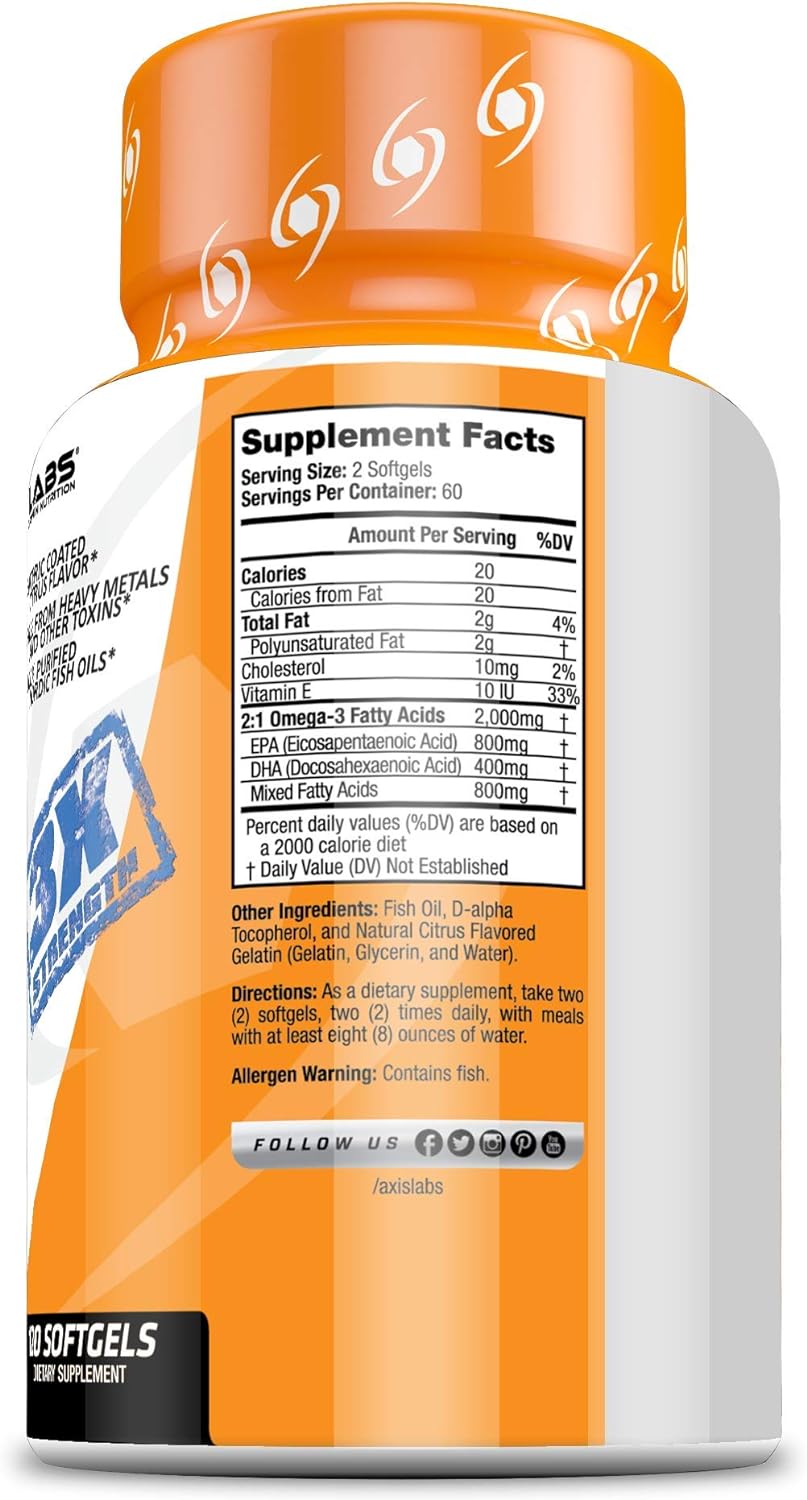 DESCRIPTION : Axis Labs | Purified Omega Fish Oil | Mineral Supplement | Essential Brain Support | 120 Soft Gel Capsules | Citrus Flavored