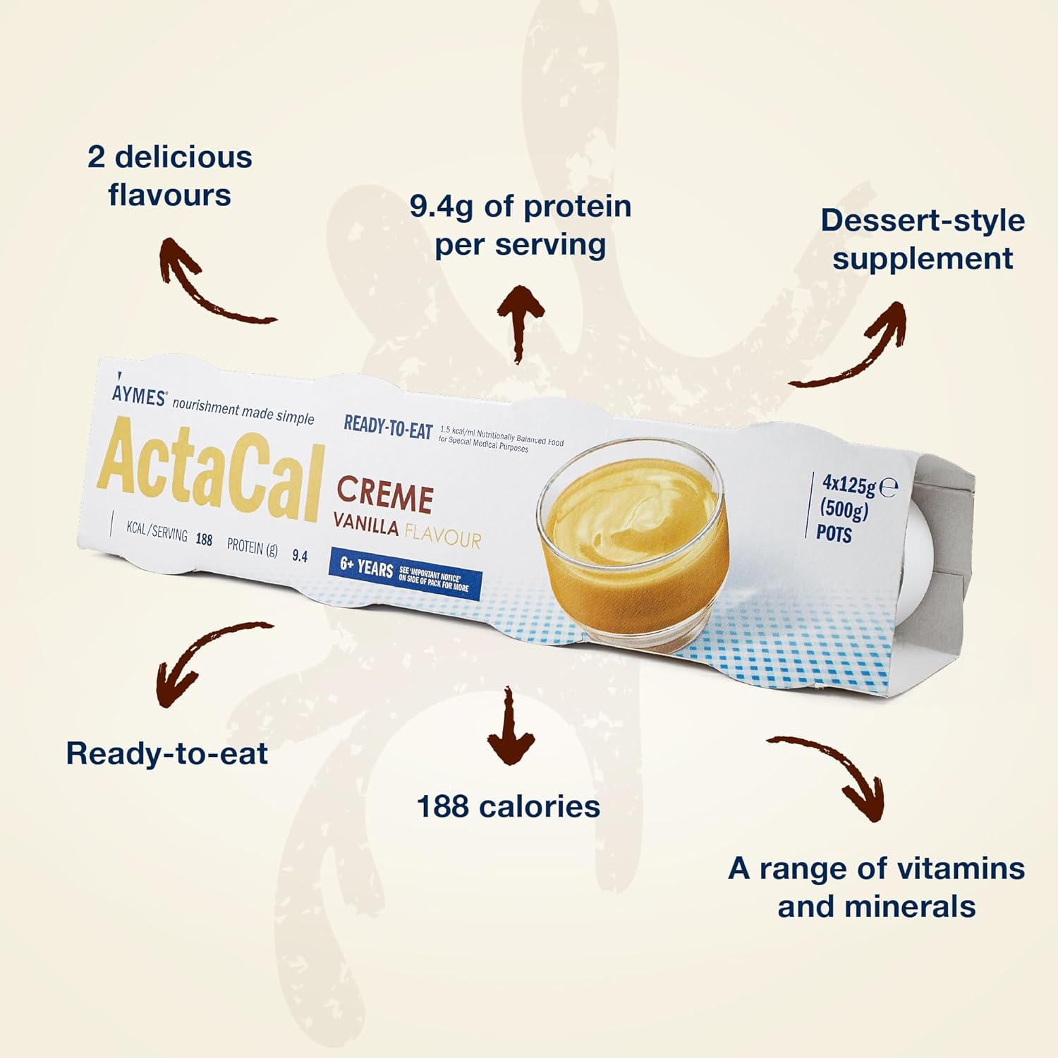 Aymes - Actacal Crème - Dessert-Style Nutritional Product - Vanilla - 24 X 125G Pots - Gluten Free & Vegetarian - Suitable For Adults And Children Aged 3+