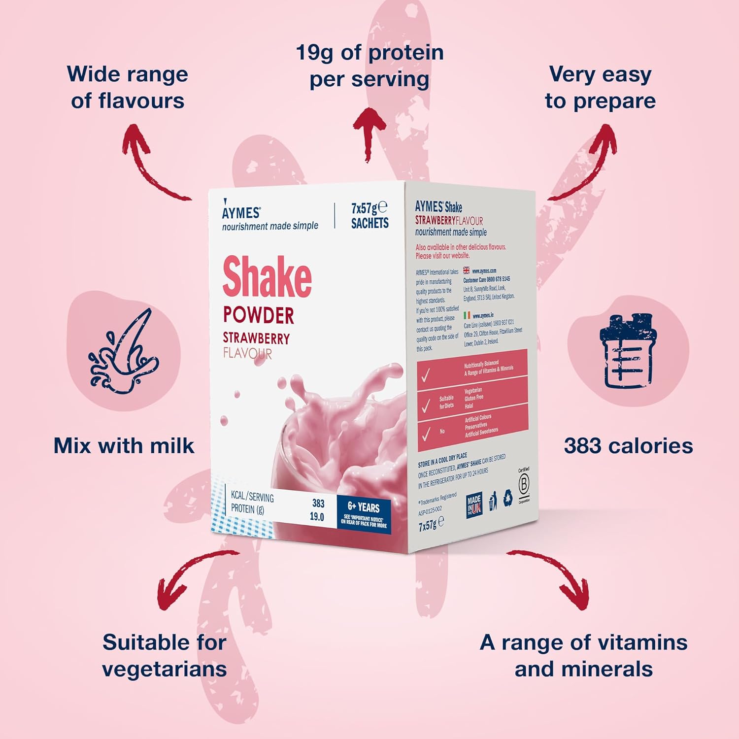 Aymes - High Protein Nutritional Powder Shakes - Strawberry - 7 Servings - Milkshake-Style Drink Mix - Gluten Free, Vegetarian, Halal & Kosher Suitable - For Ages 3+ And Adults