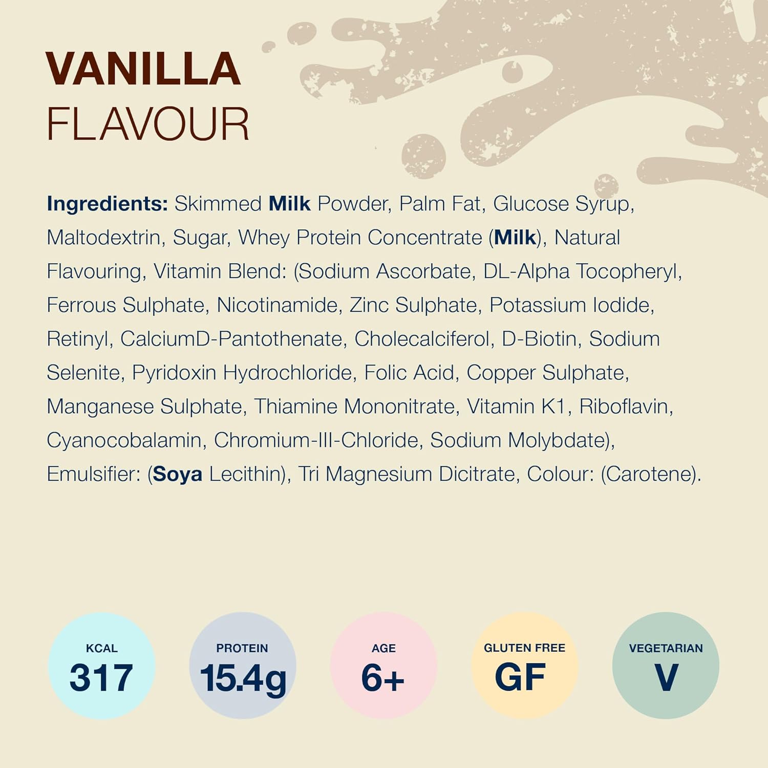Product Description AYMES SHAKE COMPACT VANILLA Ingredients Skimmed Milk Powder, Palm Fat, Glucose Syrup, Maltodextrin, Sugar, Whey Protein Concentrate (Milk), Natural Flavouring, Vitamin Blend: (Sodium Ascorbate, DL-Alpha Tocopheryl, Ferrous Sulphate, Nicotinamide, Zinc Sulphate, Potassium Iodide, Retinyl, Calcium- D-Pantothenate, Cholecalciferol, D-Biotin, Sodium Selenite, Pyridoxin Hydrochloride, Folic Acid, Copper Sulphate, Manganese Sulphate, Thiamine Mononitrate, Vitamin K1, Riboflavin, Cyanocobalamin, Chromium-III-Chloride, Sodium Molybdate), Emulsifier: (Soya Lecithin), Tri Magnesium Dicitrate, Colour: (Carotene). P.when('A').execute(function(A) { A.on('a:expander:toggle_description:toggle:collapse', function(data) { window.scroll(0, data.expander.$expander[0].offsetTop-100); }); }); Directions Shake Well Manufacturer Contact Information MORE INFORMATION ON THE PACKAGE See more,NUTRIENT-RICH IN A COMPACT FORMAT: AYMES Shake Compact is a milkshake-style high-protein powder designed to complement a balanced diet. Each low-volume serving provides key nutrients in a convenient, easy-to-mix format - ideal for individuals with increased nutritional needs,LOW VOLUME: Each 150ml serving provides 15–15.4g of protein and 317–320 kcal, depending on the flavour. AYMES Shake Compact offers a convenient way to provide energy and protein in a small volume, making it ideal for individuals who prefer a lower intake quantity,WIDE FLAVOUR SELECTION: With a wide range of flavours in a compact powdered protein shake, including a unique ginger option, we help prevent taste fatigue while offering a budget-friendly option. Designed to suit different taste preferences while providing a convenient, cost-effective option,EASY TO PREPARE, EASY TO ENJOY: Tear, pour, mix, and shake, our simple preparation makes AYMES Shake Compact quick to enjoy. Mix with milk for a smooth texture and full flavour. Store any unfinished shake in the fridge and consume within 24 hours,EXPERTISE, INNOVATION AND SUSTAINABILITY: Backed by over 100 years of combined experience, we are committed to developing reliable, cost-effective nutritional products. Sustainability drives everything we do, from using certified ingredients to cutting packaging waste. As a proud B-Corp-certified company, we’re committed to making a lasting impact, on both people’s lives and the planet