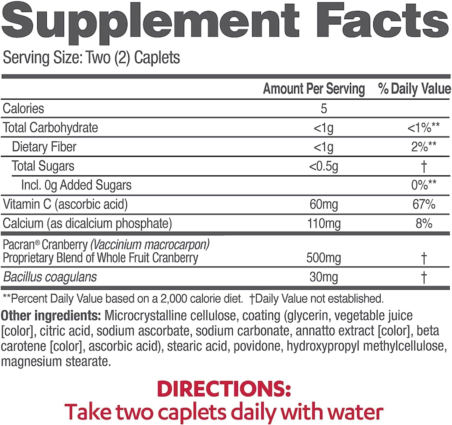 MADE WITH PACRAN, a super-concentrated whole fruit cranberry powder that helps flush the urinary tract