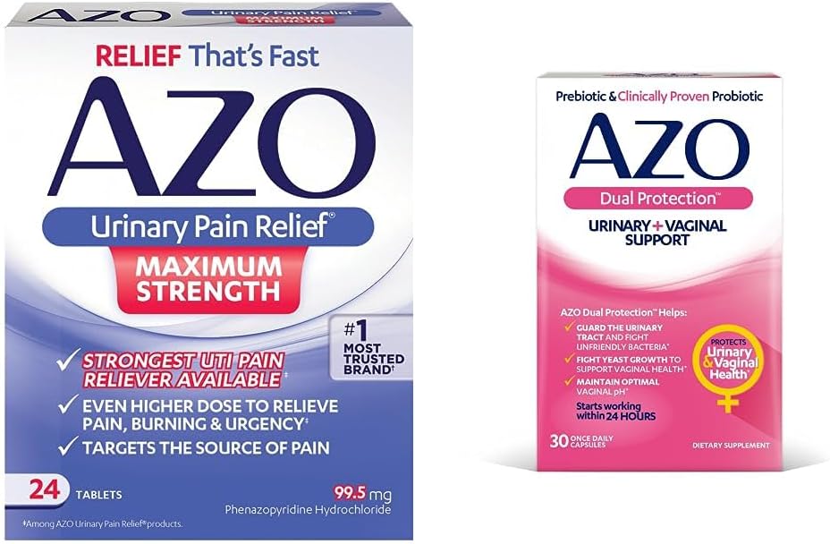 Azo Urinary Pain Relief Maximum Strength (24 Count) Fast Relief Of Uti Pain, Burning & Urgency + Dual Protection (30 Count) Urinary + Vaginal Support*, Prebiotic + Clinically Proven Women'S Probiotic