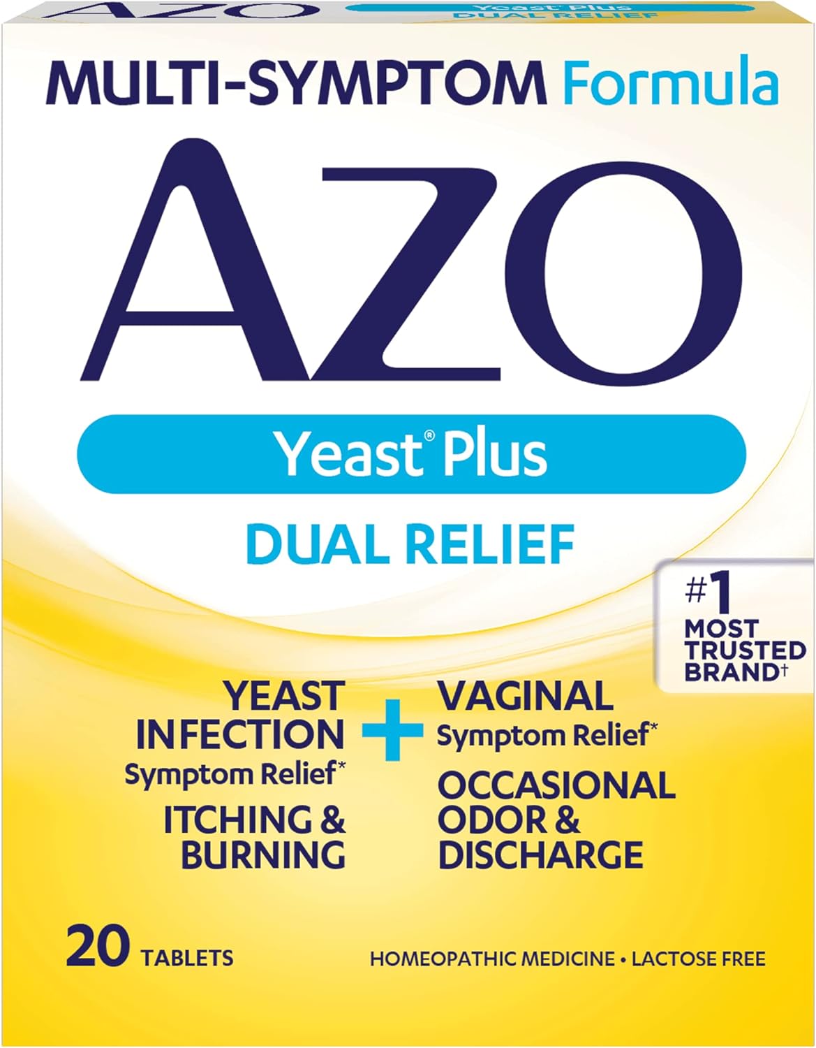Azo Yeast Plus Dual Relief Tablets, Yeast Infection And Vaginal Symptom Relief, Relieves Itching & Burning, 20 Count