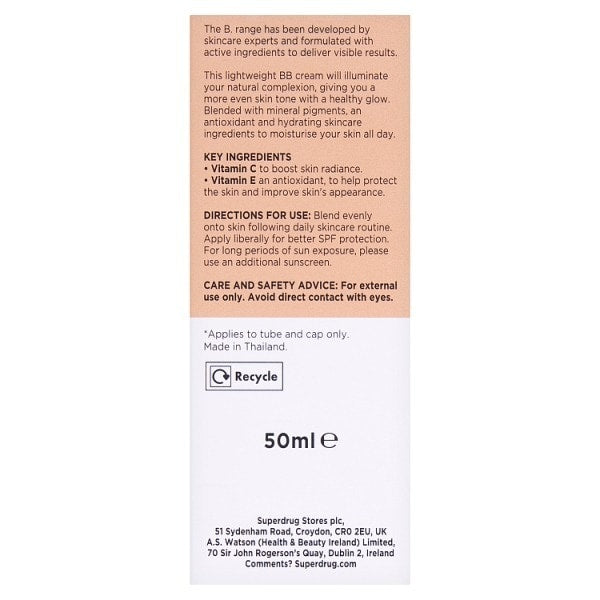 Product Information:This lightweight, illuminating BB cream will enhance your natural complexion, giving you a more even skin tone with a healthy glow. With 24 hour moisturisation and SPF 30 protection,Features:1_Brandbank,Warning or Restrictions:08182272,Product Specification:818227,Recyclable:EN
