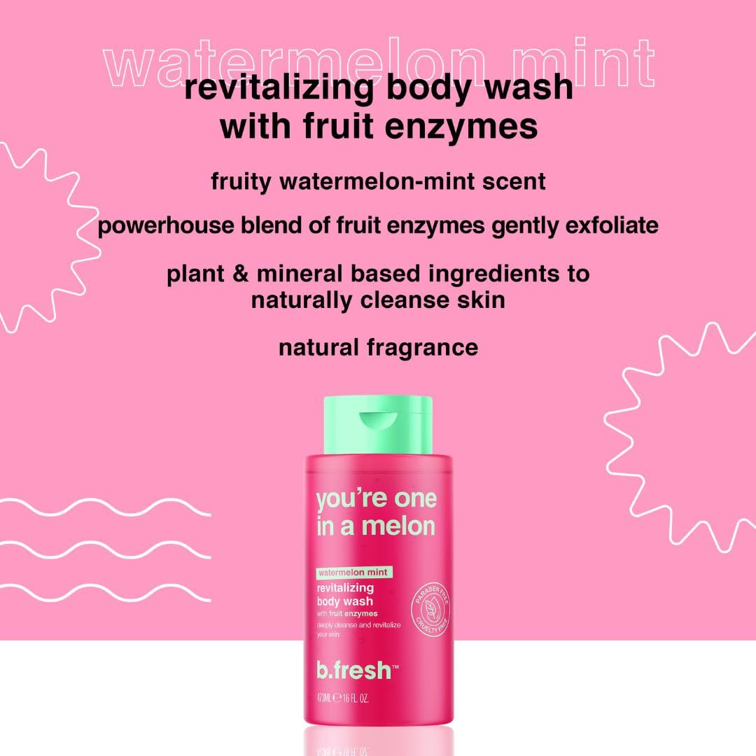 B.Fresh Exfoliating Body Wash | You'Re One In A Melon Revitalizing Shower Gel For Women & Men - Bodywash Enhanced With Exfoliating Fruit Enzymes, Smells Like Deliciously Fruity Watermelon, 16 Fl Oz