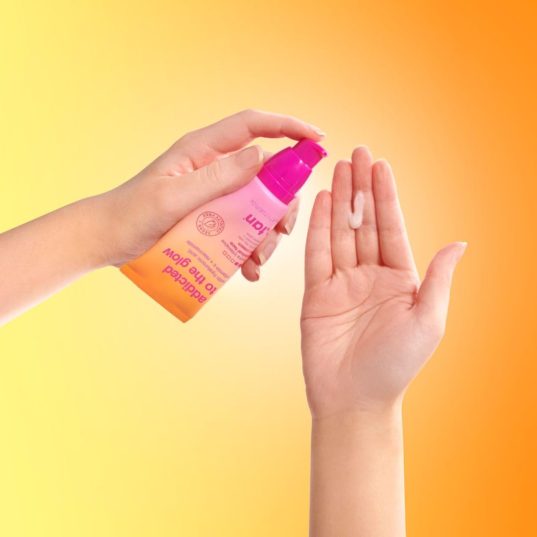 About this item GRADUAL FACE TAN LOTION. i'm a gradual face tanning cream that brings the hydration + a boost of glow MEGA MOISTURIZING. i'm enriched with hyaluronic acid + vitamin c because glowing skin is always in BUILDABLE COLOR. use me daily to keep the glow goin' - i'm subtle, but never boring PRO TIP. make sure other products are fully absorbed before applying. replace with your current moisturizer + apply a thin layer all over & dont forget to wash your hands! VEGAN FRIENDLY. i love animals so im cruelty free, vegan friendly, and free of nasties like parabens MADE IN THE USA: Made by the tanning experts here in the USA. Our state of the art production facilities use only the highest quality ingredients so you know your skin is well looked after. › See more product details,GRADUAL FACE TAN LOTION. i'm a gradual face tanning cream that brings the hydration + a boost of glow,MEGA MOISTURIZING. i'm enriched with hyaluronic acid + vitamin c because glowing skin is always in,BUILDABLE COLOR. use me daily to keep the glow goin' - i'm subtle, but never boring,PRO TIP. make sure other products are fully absorbed before applying. replace with your current moisturizer + apply a thin layer all over & dont forget to wash your hands!,VEGAN FRIENDLY. i love animals so im cruelty free, vegan friendly, and free of nasties like parabens,MADE IN THE USA: Made by the tanning experts here in the USA. Our state of the art production facilities use only the highest quality ingredients so you know your skin is well looked after