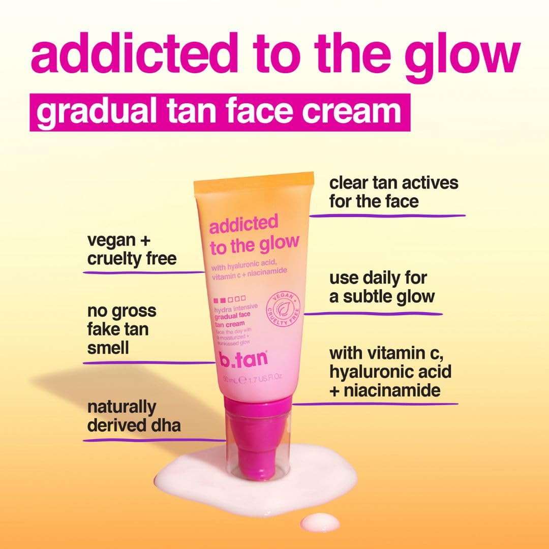 B.Tan Gradual Self Tan Face Lotion | Addicted To The Glow - Daily Faical Tanning Cream For A Sunkissed Dark Bronze, Best Sunless Moisturizer, Hydrating Vitamin C, Travel Size, No Fake Tanner Smell