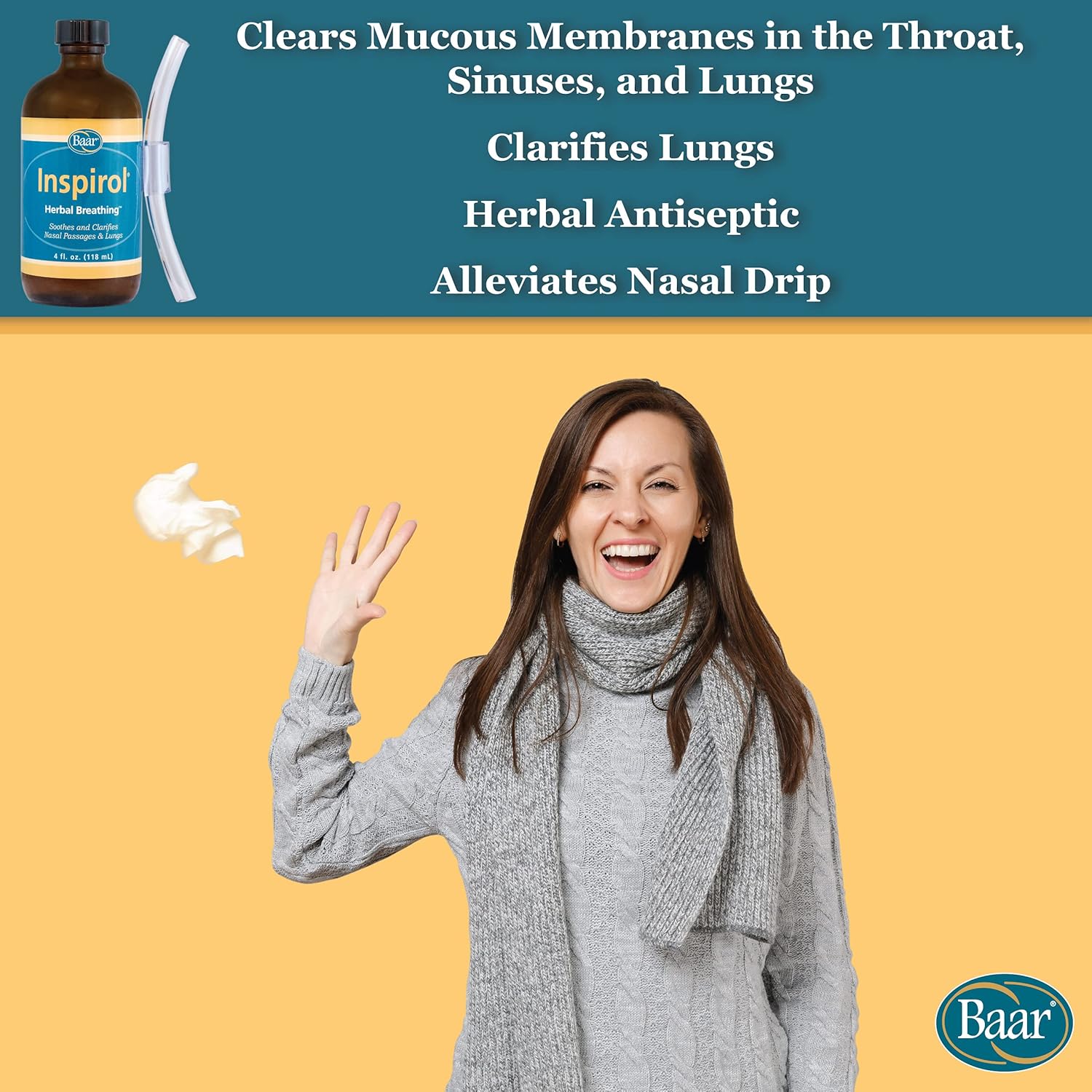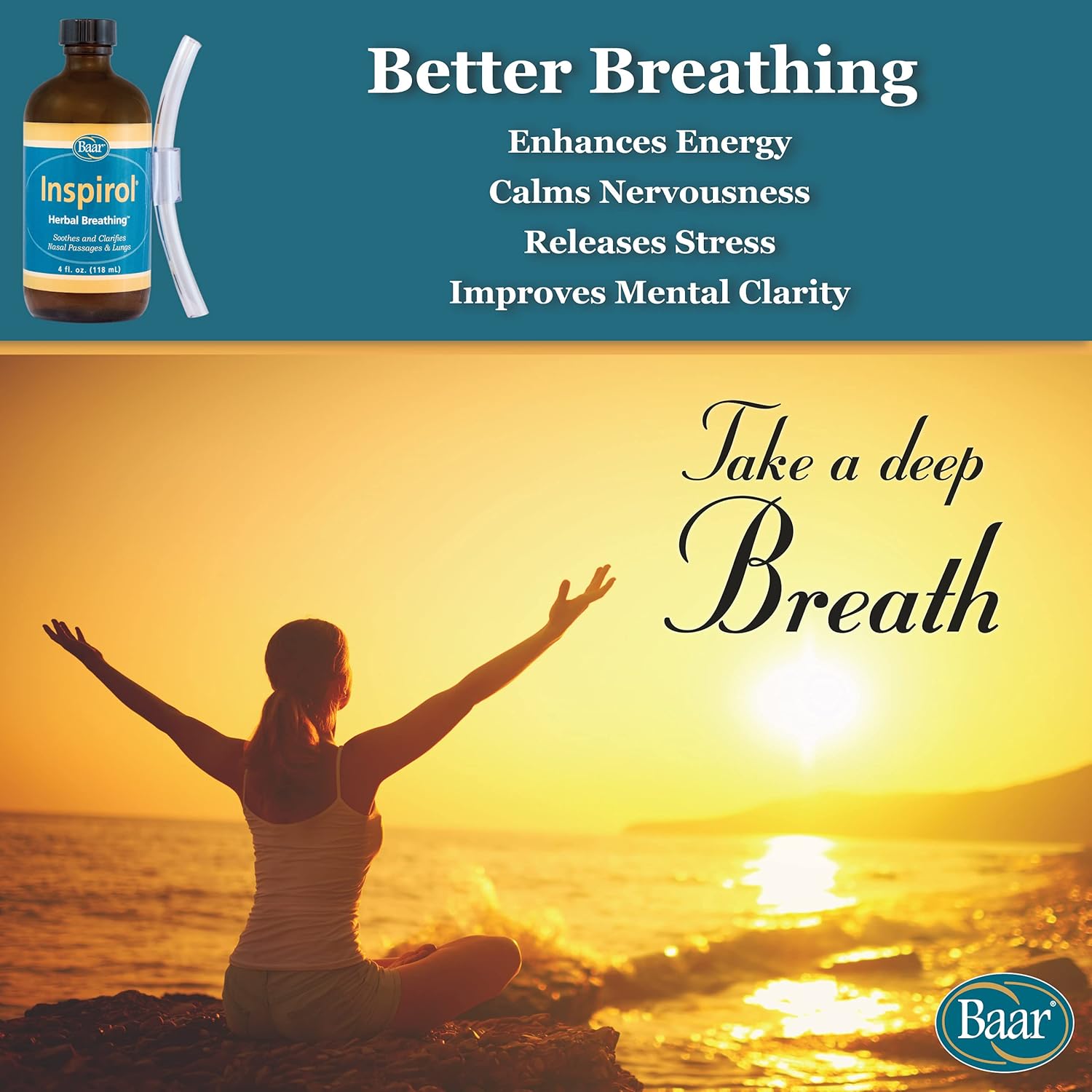 Baar Products - Inspirol Herbal Breathing - Aromatherapy Product - Herbal Antiseptic - Clears Congestion, Opens Sinuses, Alleviates Nasal Drip - Allergy Relief - Includes One Tube - 4 oz,INSPIROL HERBAL BREATHING - Experience healthy breathing with the Inspirol Herbal Breathing aromatherapy product. Each bottle comes with one breathing tube,HERBAL ANTISEPTIC - This herbal antiseptic formula is formulated with select botanical ingredients known for their ability to provide cellular protection and boost the body’s defenses against foreign invaders. It penetrates and soothes nasal passages, alleviates congestion, relieves allergy and sinus symptoms, and lessens nasal drip,HEALTH BENEFITS - Inspirol works to promote better breathing which in turn improves energy, calms nervousness, releases stress, and improves mental clarity,EASY USE - Simply shake the bottle, remove the cap, place the tube into the airspace above the liquid, and then breathe in the fumes. Be sure to breathe deeply through each nostril and then in through the mouth, exhaling after each breath. We recommend using it 1 to 3 times daily,MADE IN USA - Inspirol Herbal Breathing is proudly made in the USA