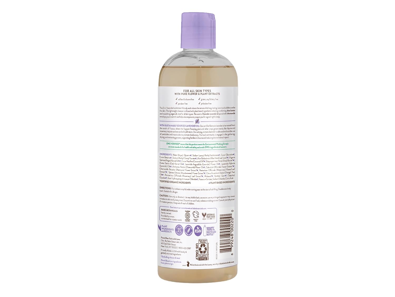 Babo Botanicals Calming Lavender 2-In-1 Bubble Bath & Wash - Relaxing Chamomile & Lavender - Ewg Verified- Vegan- For All Ages- Scented With Lavender Essential Oil - 1 Or 2-Pack