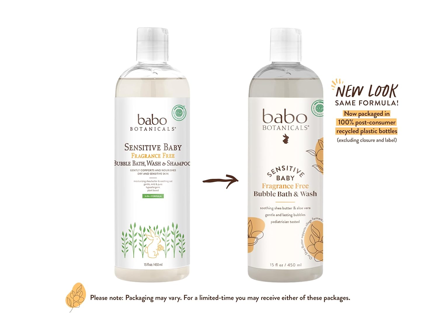 Babo Botanicals Sensitive Baby Fragrance-Free 2-In-1 Bubble Bath & Wash - Shea Butter, Calendula & Oat - Vegan - Ewg Verified - For Babies & Kids
