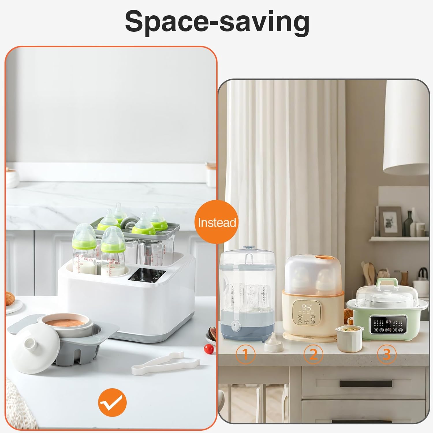 [Space-Saving Design]: With sanitizer, dryer, milk warmer, and heating baby food functions all in one compact unit, it frees up precious kitchen counter space for new mothers