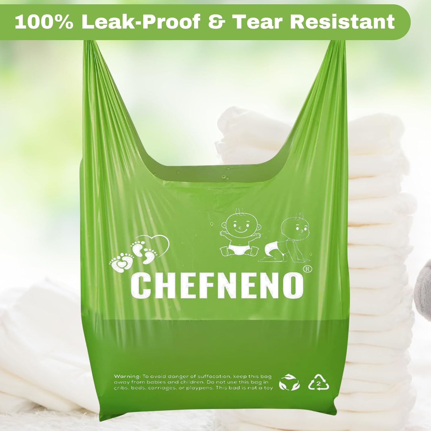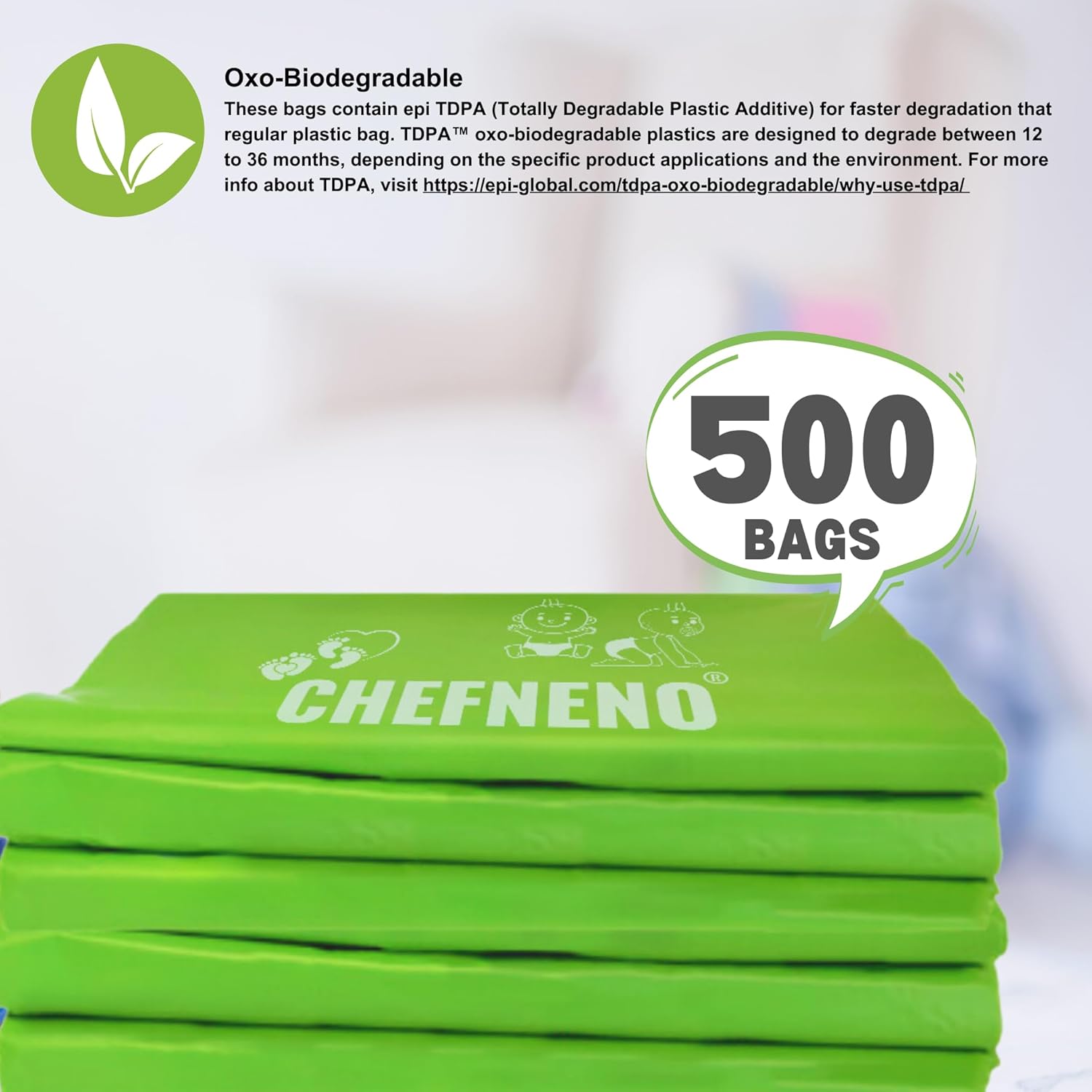 Bye Bye Stinky Diapers Going Out To The Park With Your Newborn We Know It Is A Little Nerve-Wracking Even Without The Added Worry Of Getting Stranded With Dirty Diapers And Unable To Dispose Them Right Away. Not To Worry - Chefneno Has You Covered. When You’Re Out And About With Your Newborn, Those Dirty Diapers, Disposable Changing Pads, And Used Baby Wipes Need To Go Somewhere And Our Disposable Diaper Bags Offer Leak-Proof And Odor-Controlled Diaper Disposal At Home Or On The Go. Our Diaper Bags Are Packaged For Convenience & Are Easy To Carry. All You Need To Do Is Just Tuck Few Chefneno Disposable Bags In With Your Diapers And Wipes & You Are Good To Go. They Take Up Almost No Room And Give You A Peace Of Mind While Out In Public. Easy Tie Handle This Diaper Bag Is Designed To Make It Easier To Close & Seal Unpleasant Odor Of A Dirty Diaper. The Tie Handle Is About 4 Inches Long And Strong Enough To Hold Up To Four Heavy Wet Diapers. Super Value Pack Each Box Contains 500 Disposable Diaper Bags That Will Last For A Long Time. By Offering A Value Pack, We Make It Reasonably Affordable And Economical To Our Customers. Large Size (14" X 7") By Making Our Bag A Bit Bigger Than The Standard Disposable Diaper Bag, It Can Now Be Used To Dispose Different Size Diaper. Out Diaper Bag If 14 Inches Tall And 7 Inches Wide. Thick & Durable To Prevent Any Leaks, Messes, And Spills While Changing Or Disposing Dirty Diapers, We Used Strong And Durable Material To Ensure Superior Quality And Excellent Performance Multi-Purpose Diaper Disposal Bag Dog Poop Pickup Bag Cat Litter/Poop Disposal Bag