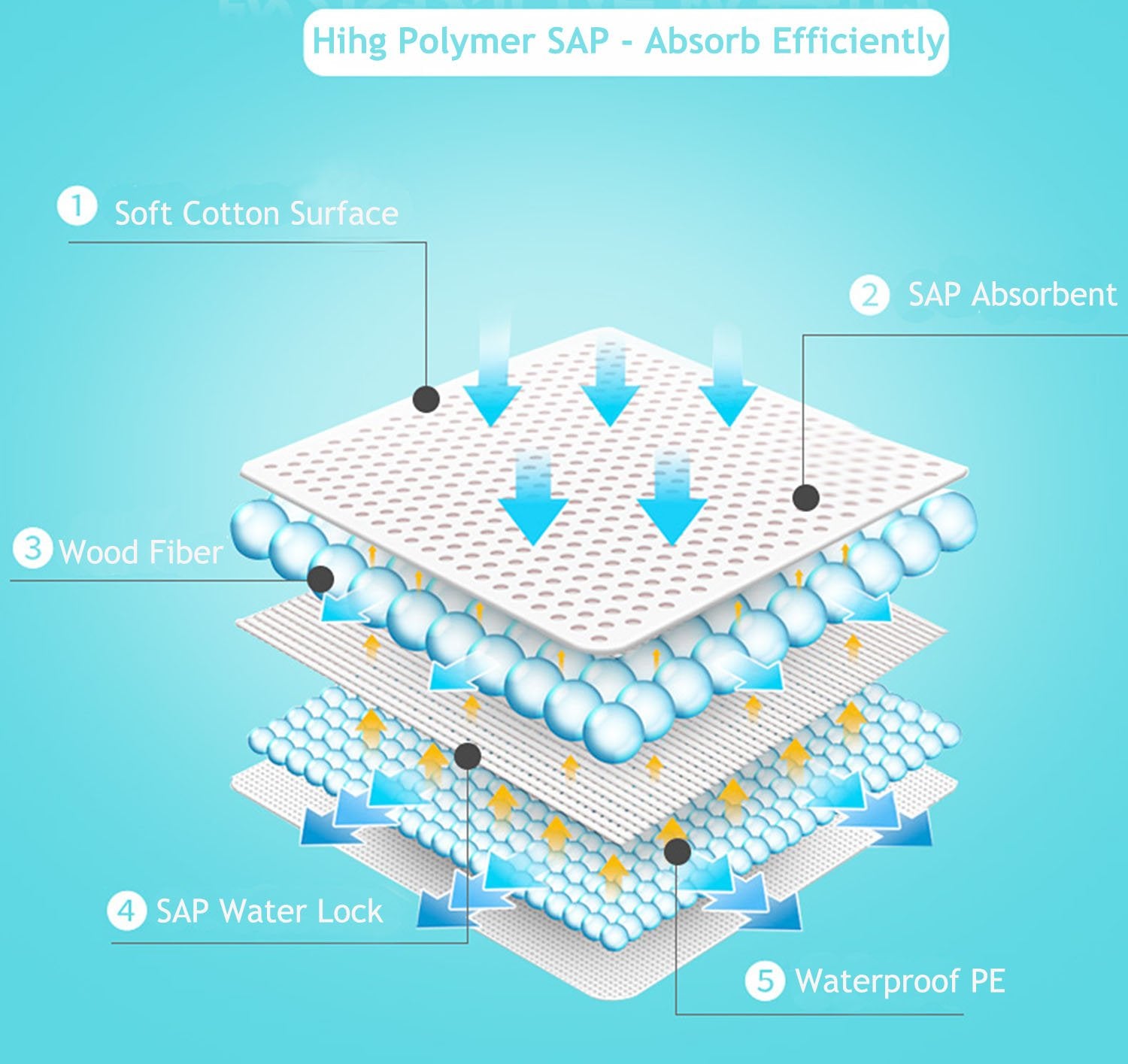 Under Pads With Polymer Spa Offer Extra Absorbency And Protection, Highly Absorbent, Soft Fluff Fill With Sap