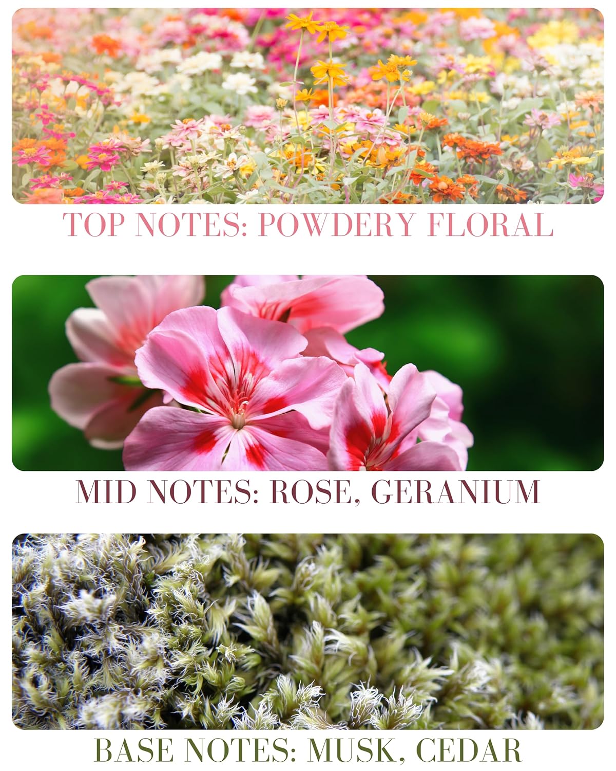 Scent Profile - Top: Powdery Floral Mid: Rose, Geranium Base: Musk, Cedar. Not Quite The Scent Of A NewbornāS Head, But Maybe The Next Best Thing. Powdery Floral Notes Of Rose, Geranium, Ylang Ylang And Patchouli With Just A Dust Of Cedarwood And Musk