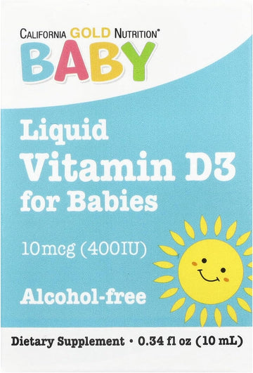 Baby Vitamin D3 By California Gold Nutrition - Liquid D3 Supplement For Babies, Vegetarian Friendly - Developmental Support - Alcohol & Gluten Free, Non-Gmo - 10 Mcg (400 Iu) - 0.34 Fl Oz (10 Ml)