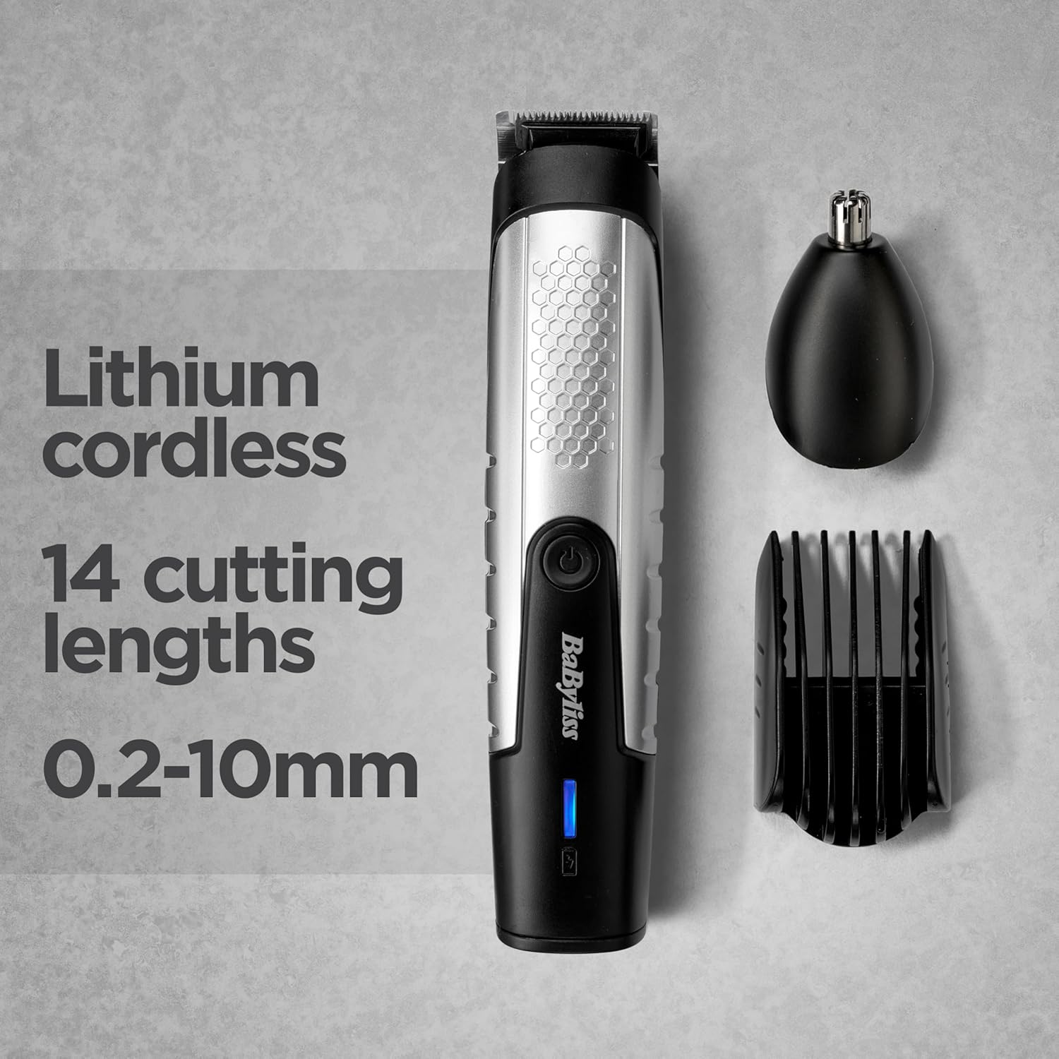 Babyliss Lithium Power Beard Trimmer, Cordless, Including Nose Hair Trimmer, Waterproof, Gifts For Men, Black