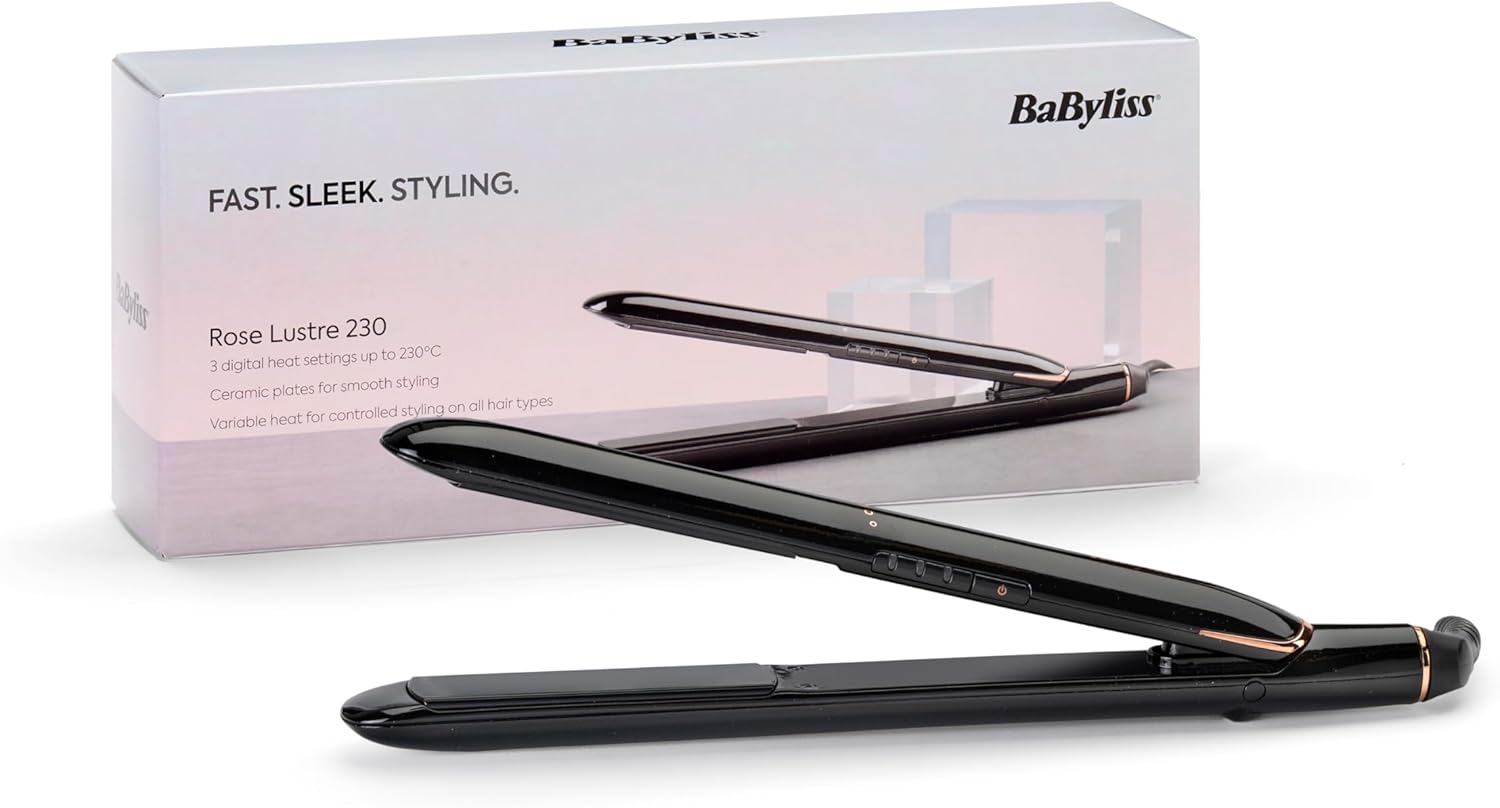 Babyliss Rose Lustre Hair Straighteners - Ceramic Plates For Smooth Everyday Styling, Fast 30 Second Heat Up, 3 Heat Settings 180°C - 230°C, 230C, Worldwide Use, 2515Du