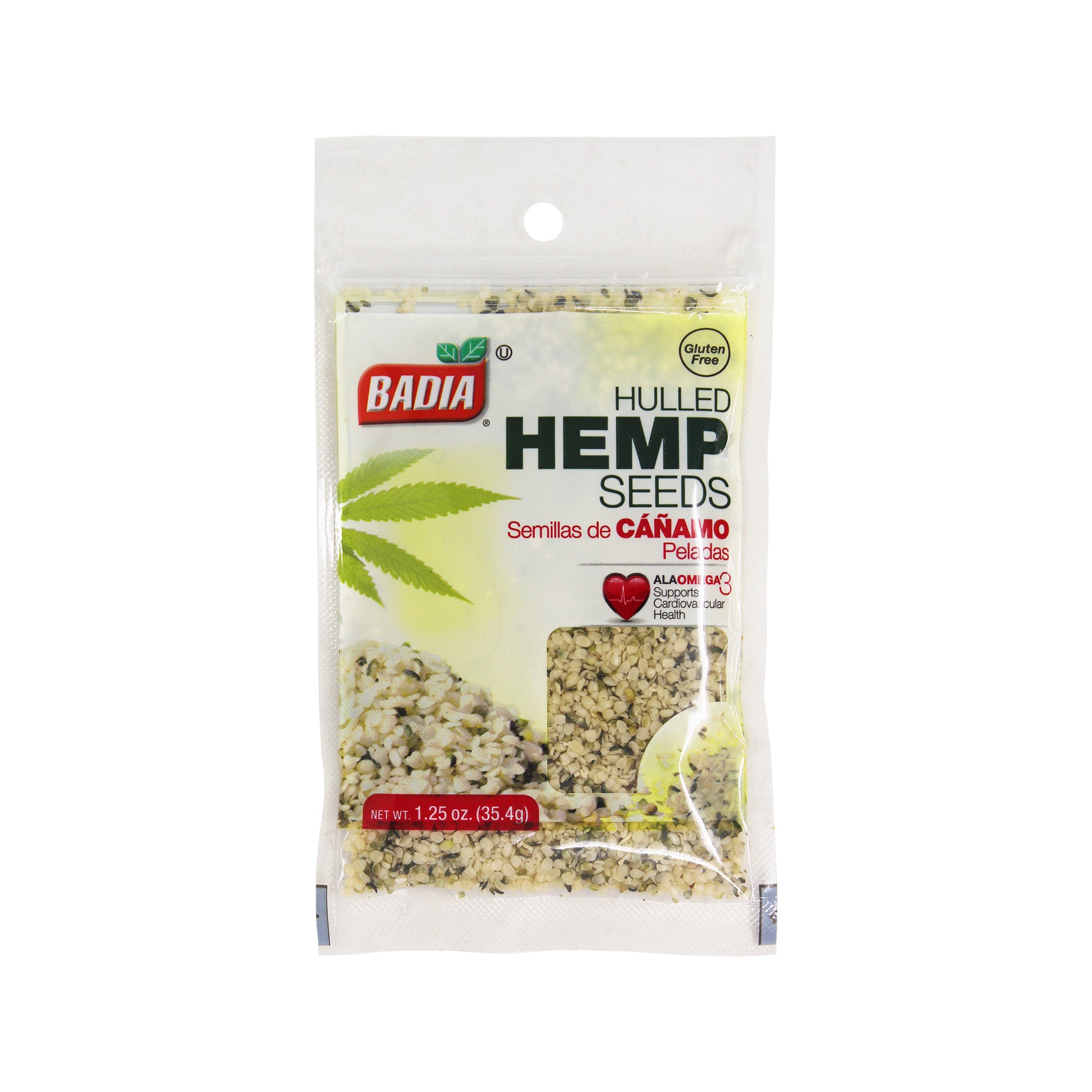Badia Hulled Hemp Seeds, 1.25 oz. Badia Hulled Hemp Seeds: ALA omega-3 supports cardiovascular health Gluten free