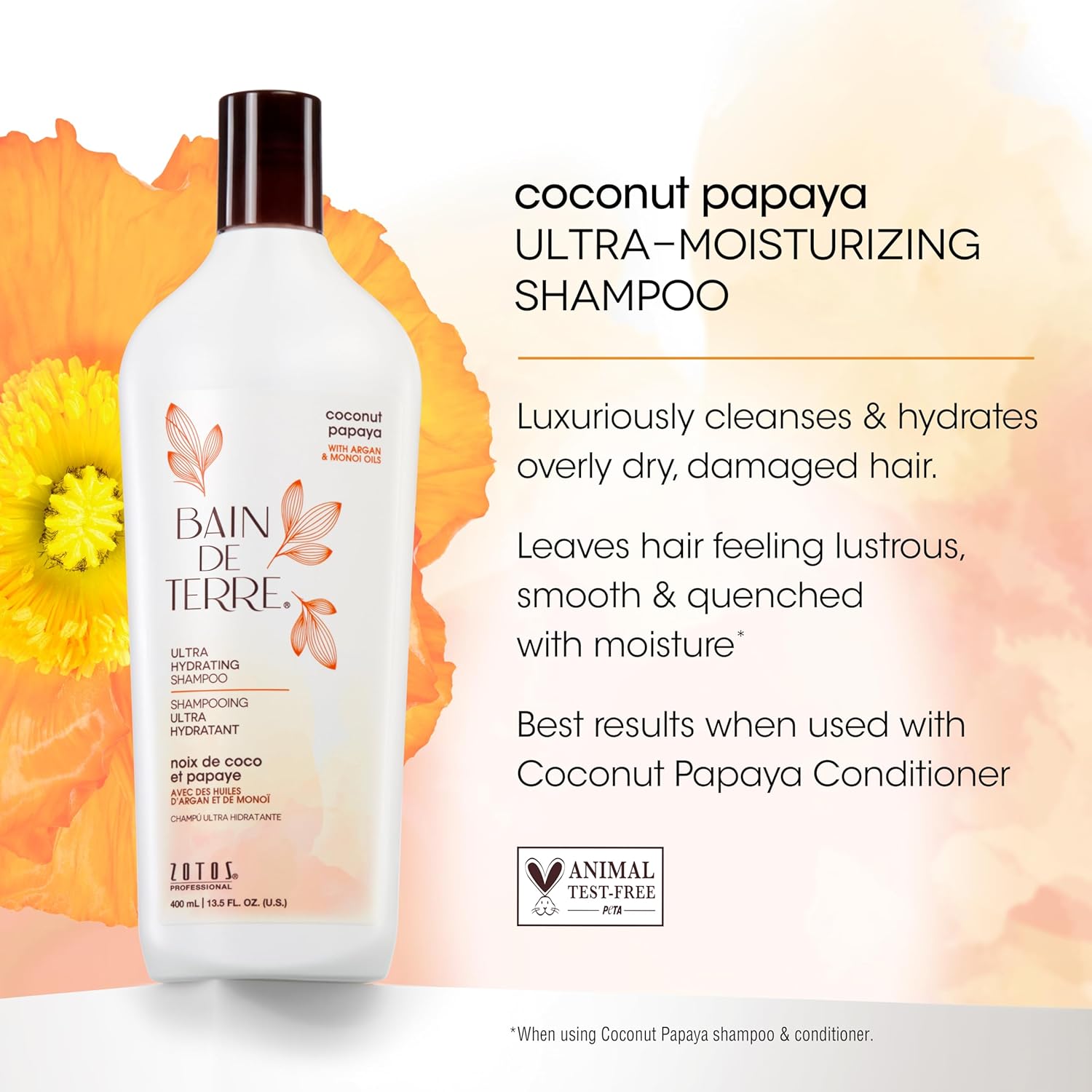 Bain De Terre Coconut Papaya Ultra Hydrating Shampoo, Moisture Quench For Dry, Damaged Hair, With Argan & Monoi Oils, Paraben-Free, Color-Safe, Vegan