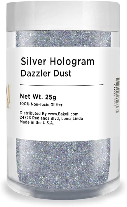Bakell Dazzler Dust Art & Craft Glitter, 25G Jar Bulk | Dazzler Dust | Non-Toxic Decorating Glitter | Arts, Crafts, Slime, Glue, Paint, Face & Body (Silver Hologram)