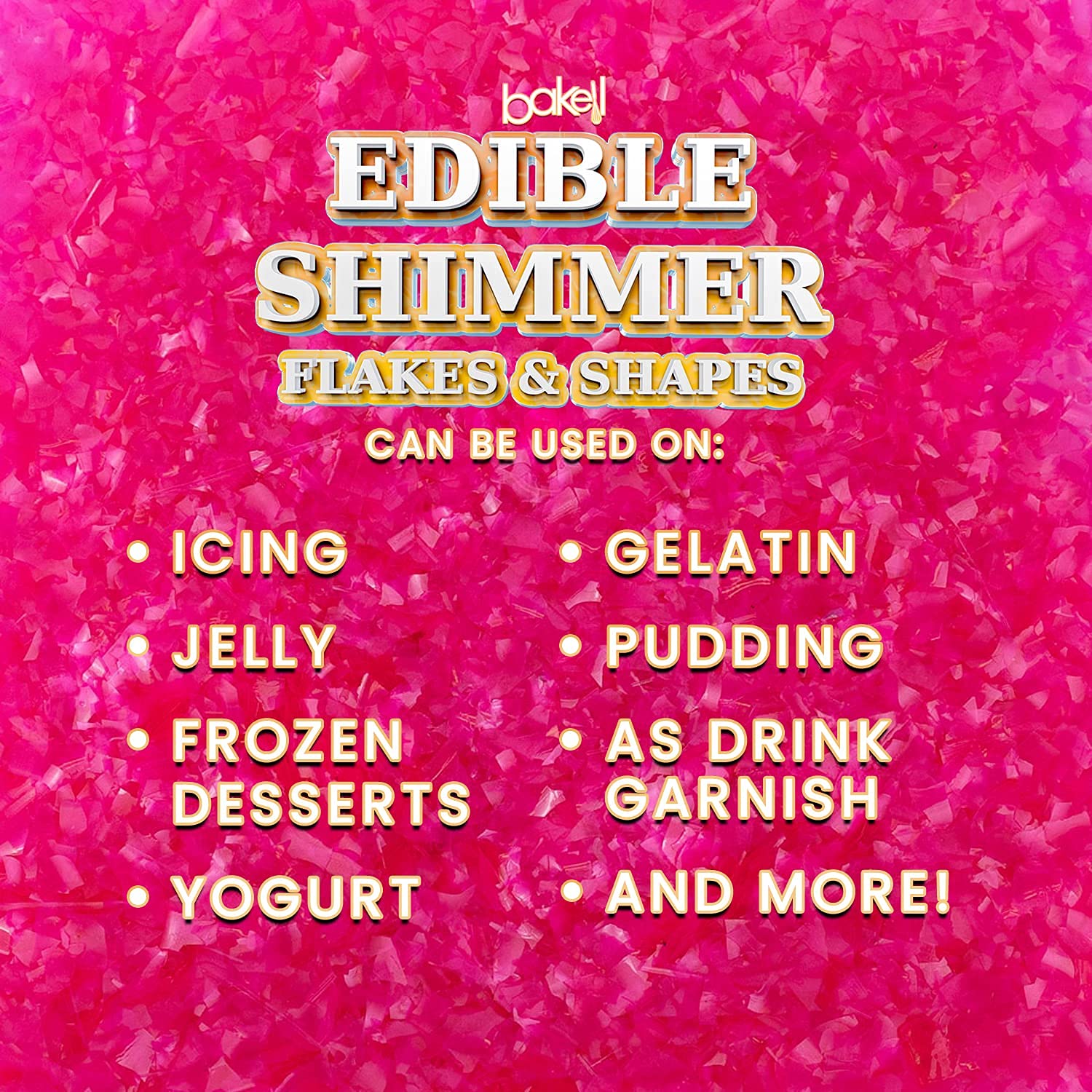 BAKELL Edible Shimmer Flakes, | Vegan Hot Pink Edible Glitter Flakes | KOSHER Certified | Halal Certified | 100% Edible & Food Grade| Cakes, Cupcakes, Cake Pops, Vegan Glitter Shimmer